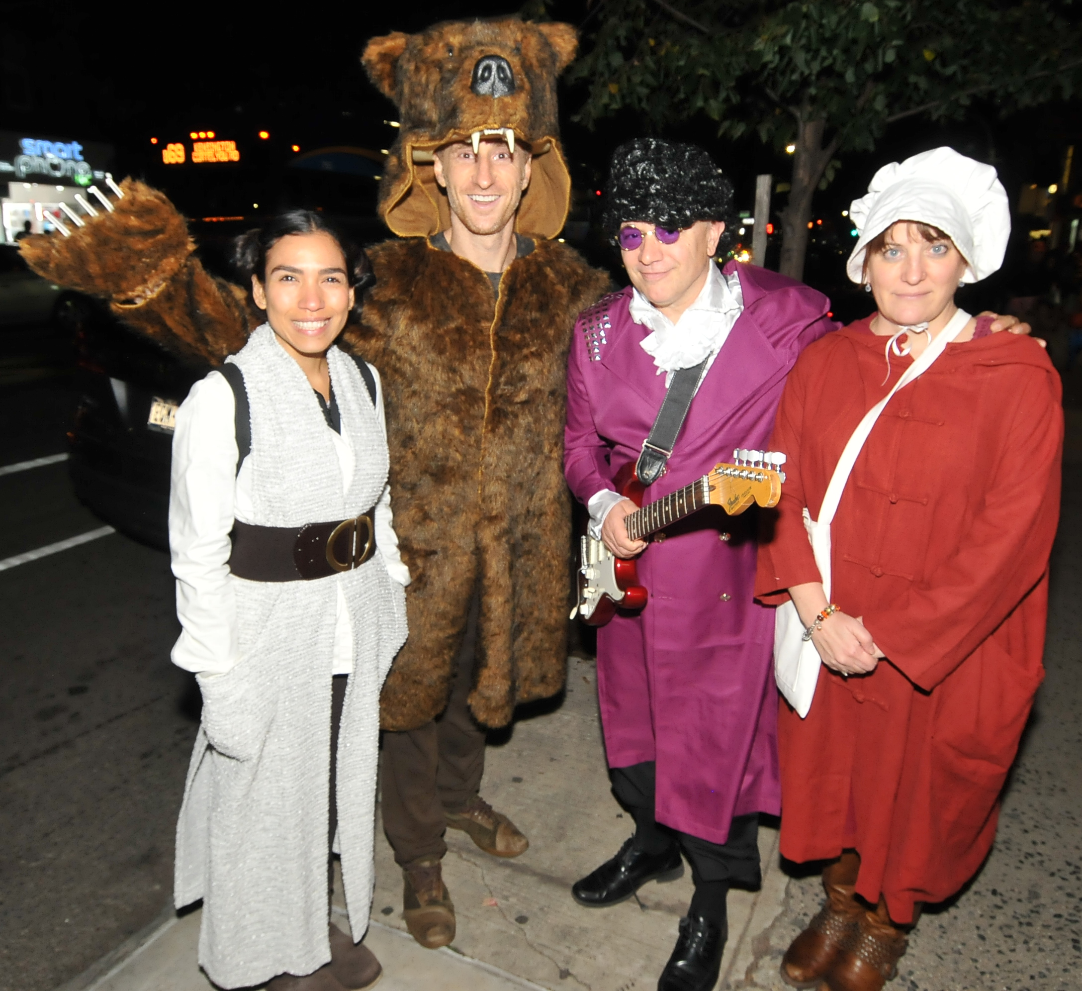 , a bear costume, the musician Prince, and a handmaid from