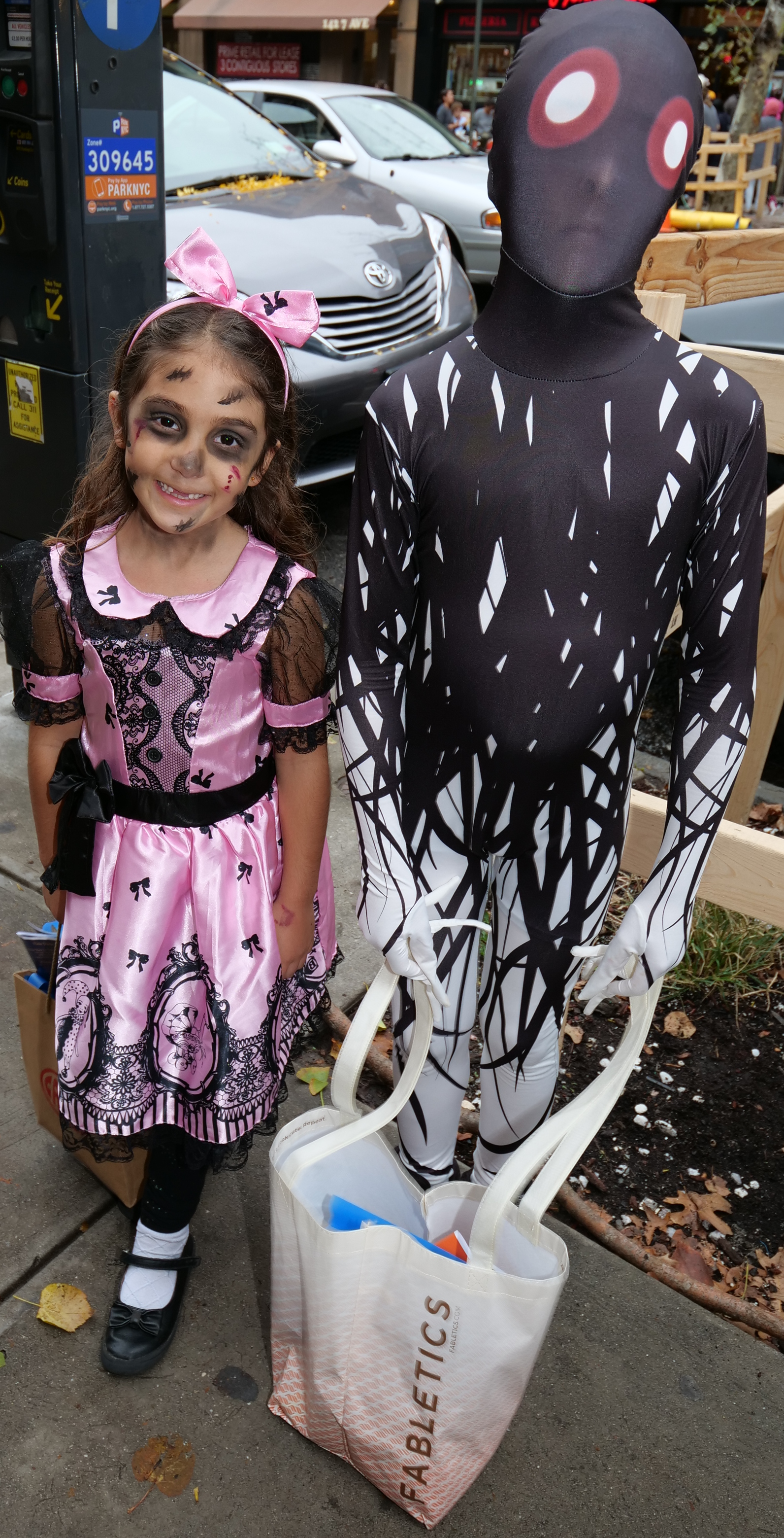 4:55 PM. She's in Hyde & EEK! Boutique Cracked Doll costume. He's in Zalgo by Morphsuits.