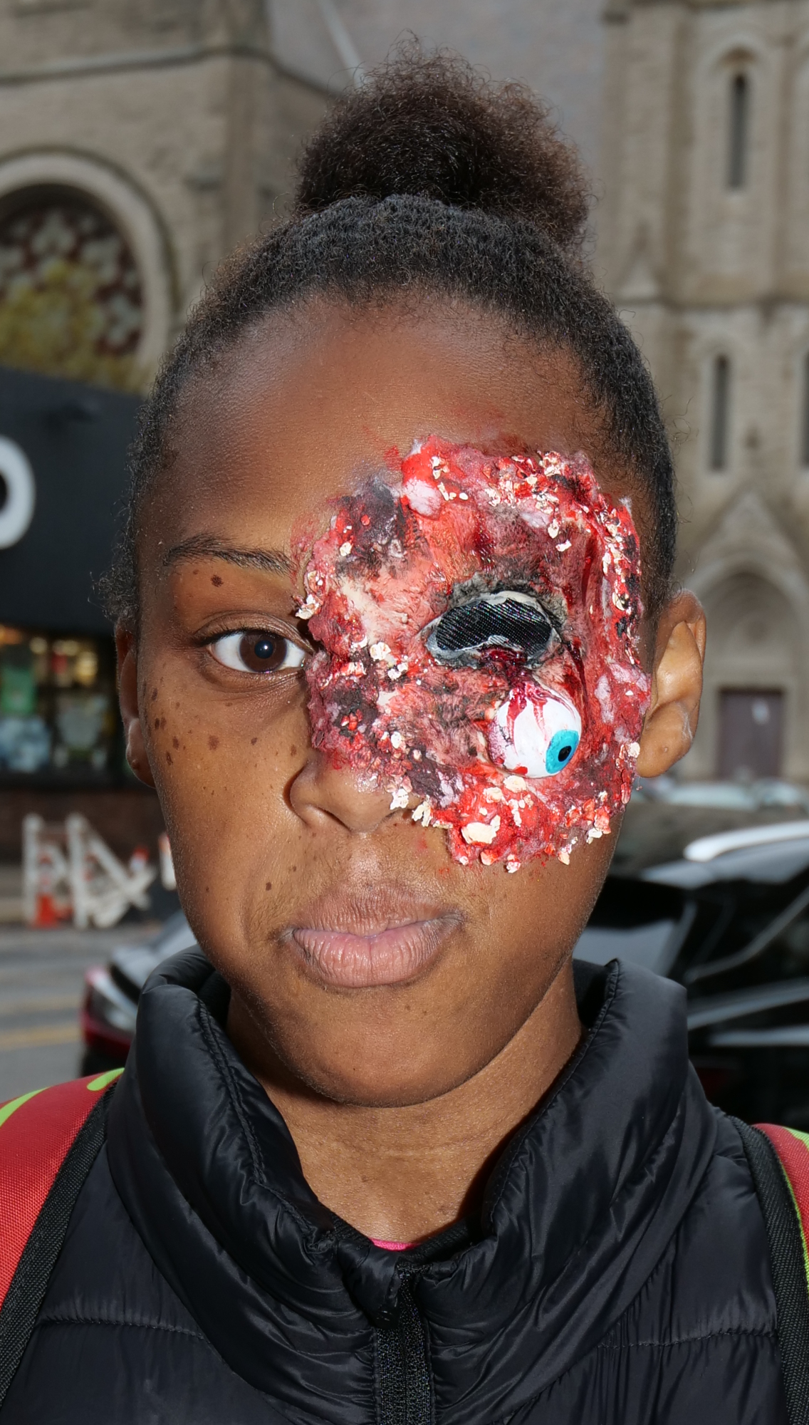 5:03 PM. A zombie that has an eye falling out of its socket.