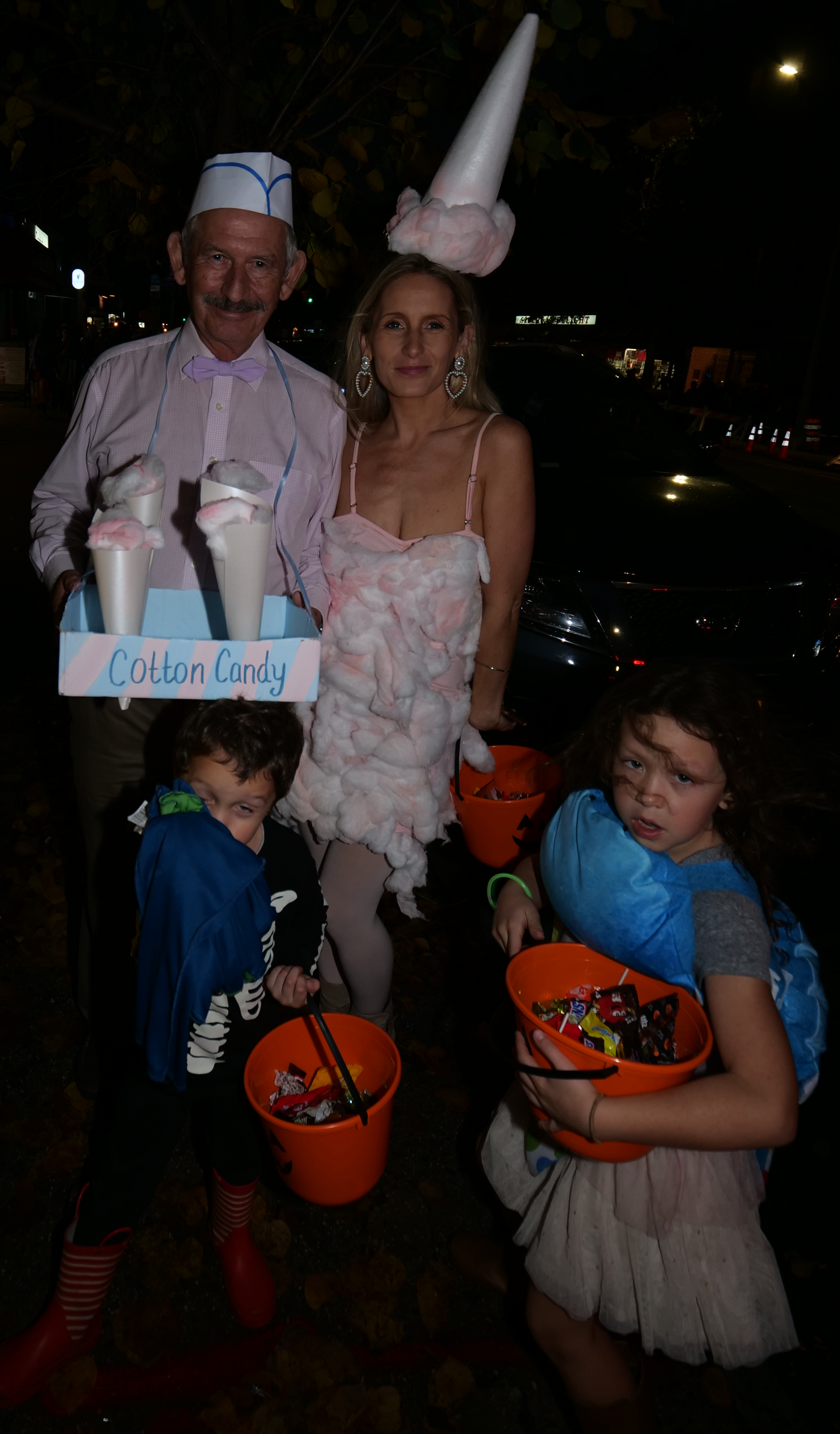 6:12 PM. A cotton candy seller with a cotton candy costume.