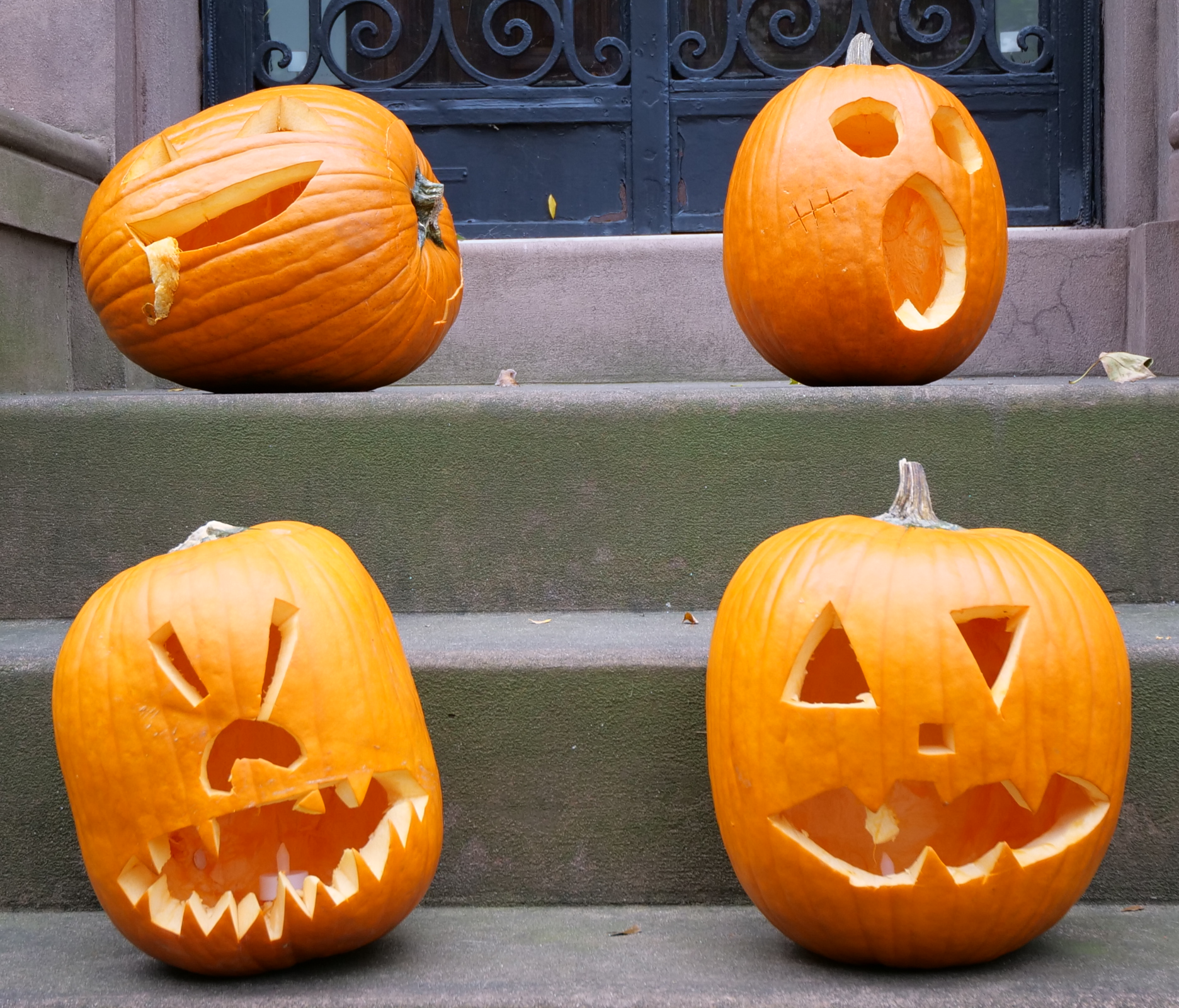 1st St, my block. Jack-o'-lanterns on a stoop.