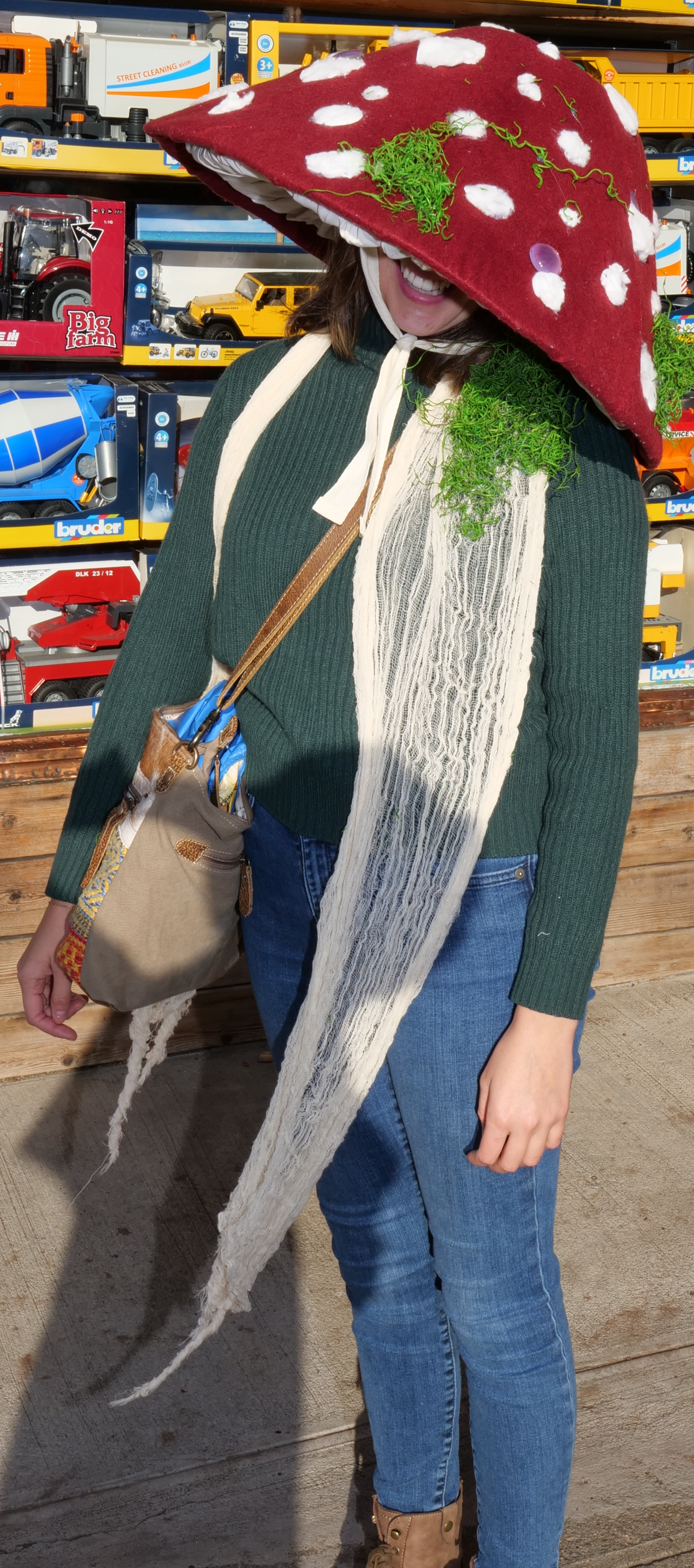 4:00 PM. A mushroom costume.