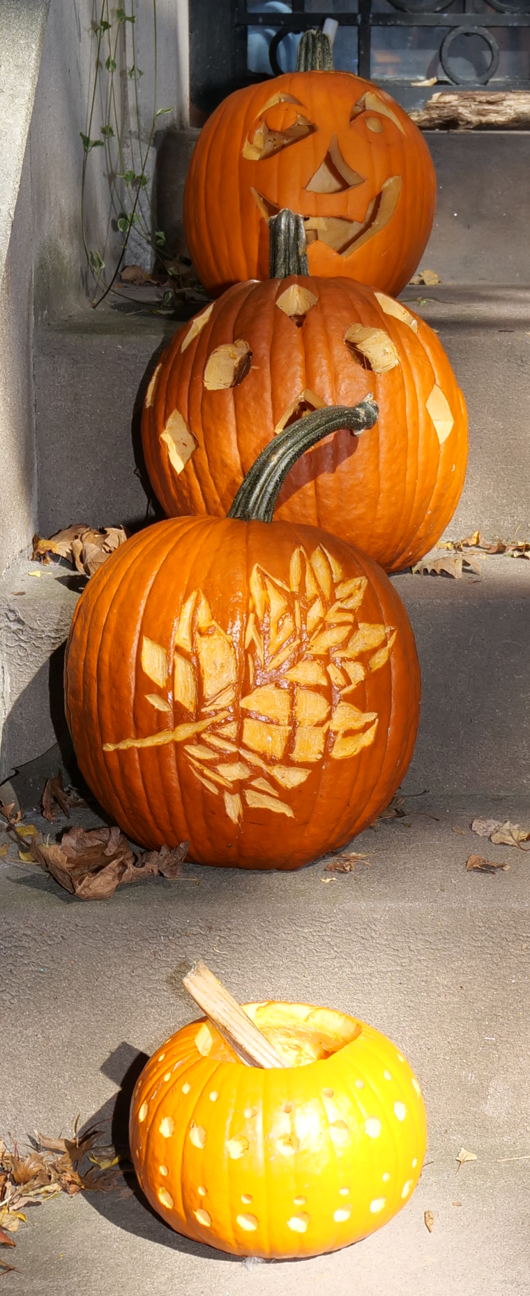 623 2nd St. Jack-o'-lanterns and carved pumpkins.