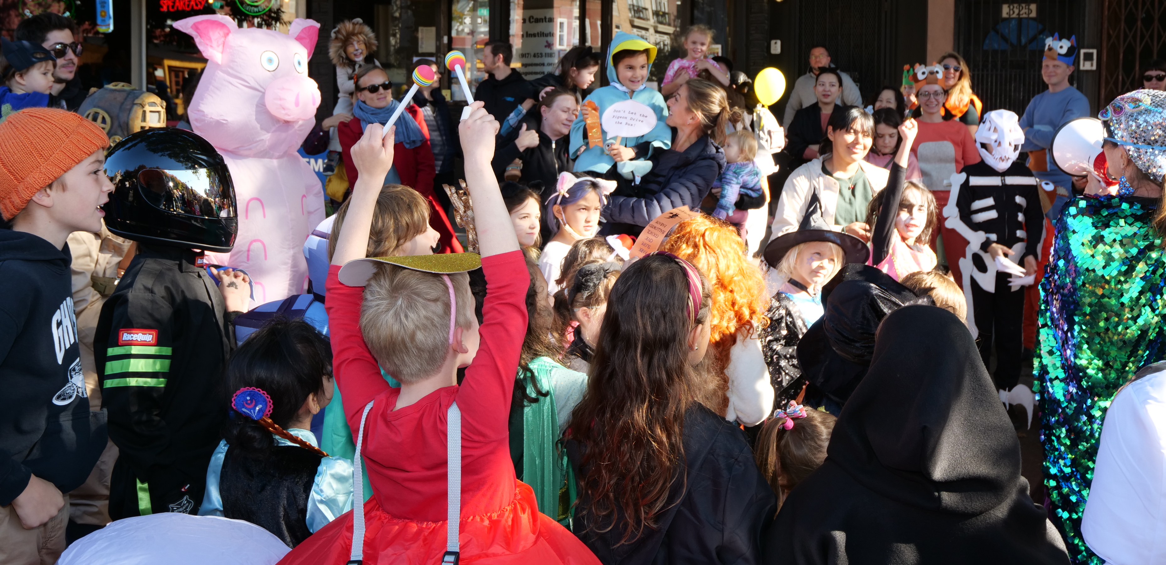 10/29, 2:21 PM. A race car driver and inflatable pig costume at left.