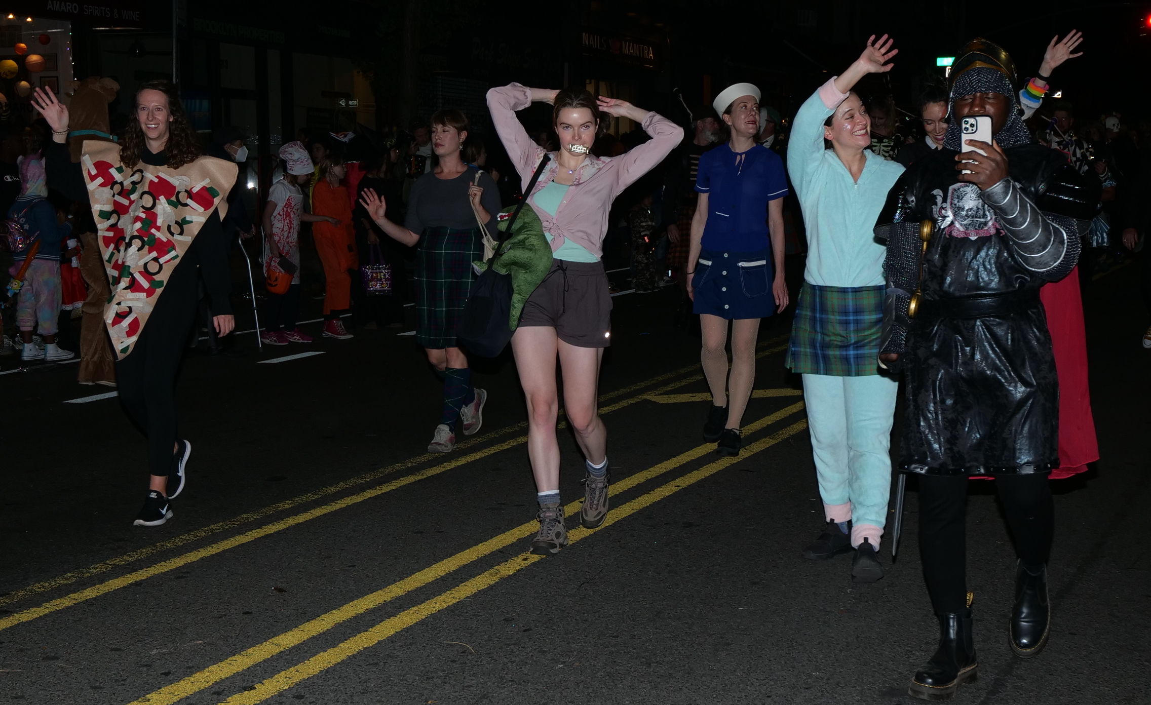 7:02 PM. I got the tail end of the parade. A pizza slice at left.