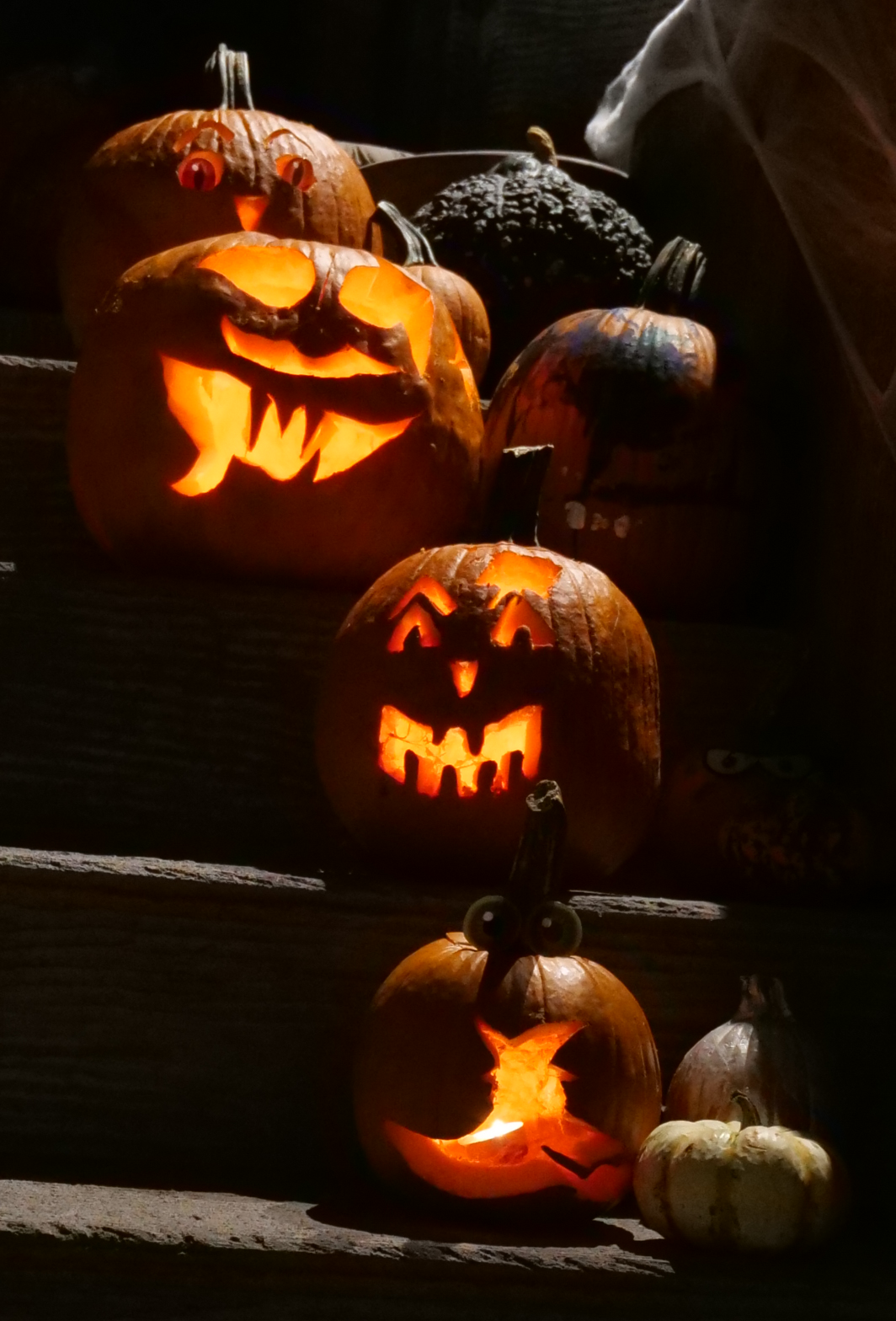 7:42 PM. Nicely lit up jack-o'-lanterns at 227 Garfield Place.