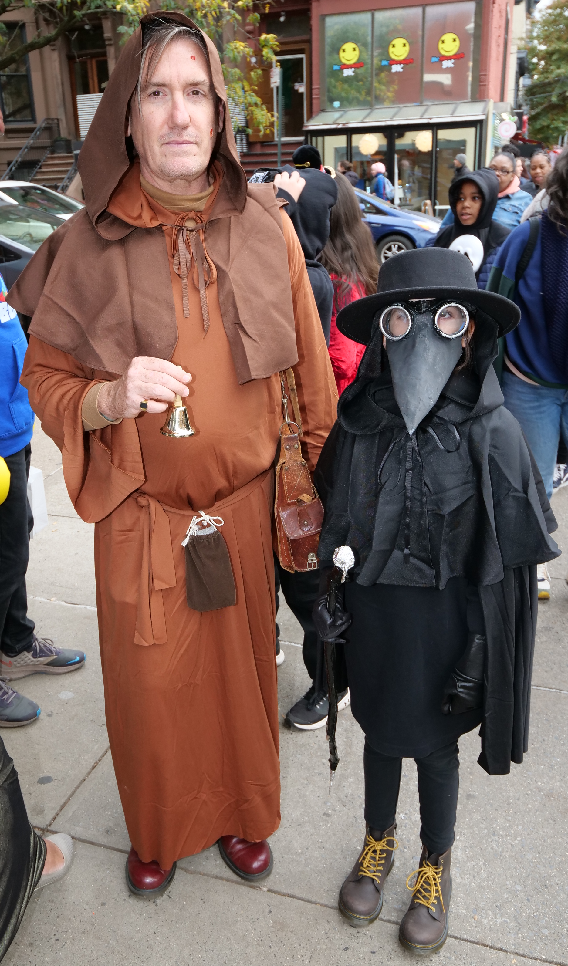 4:24 PM. A medieval monk with a plague doctor.