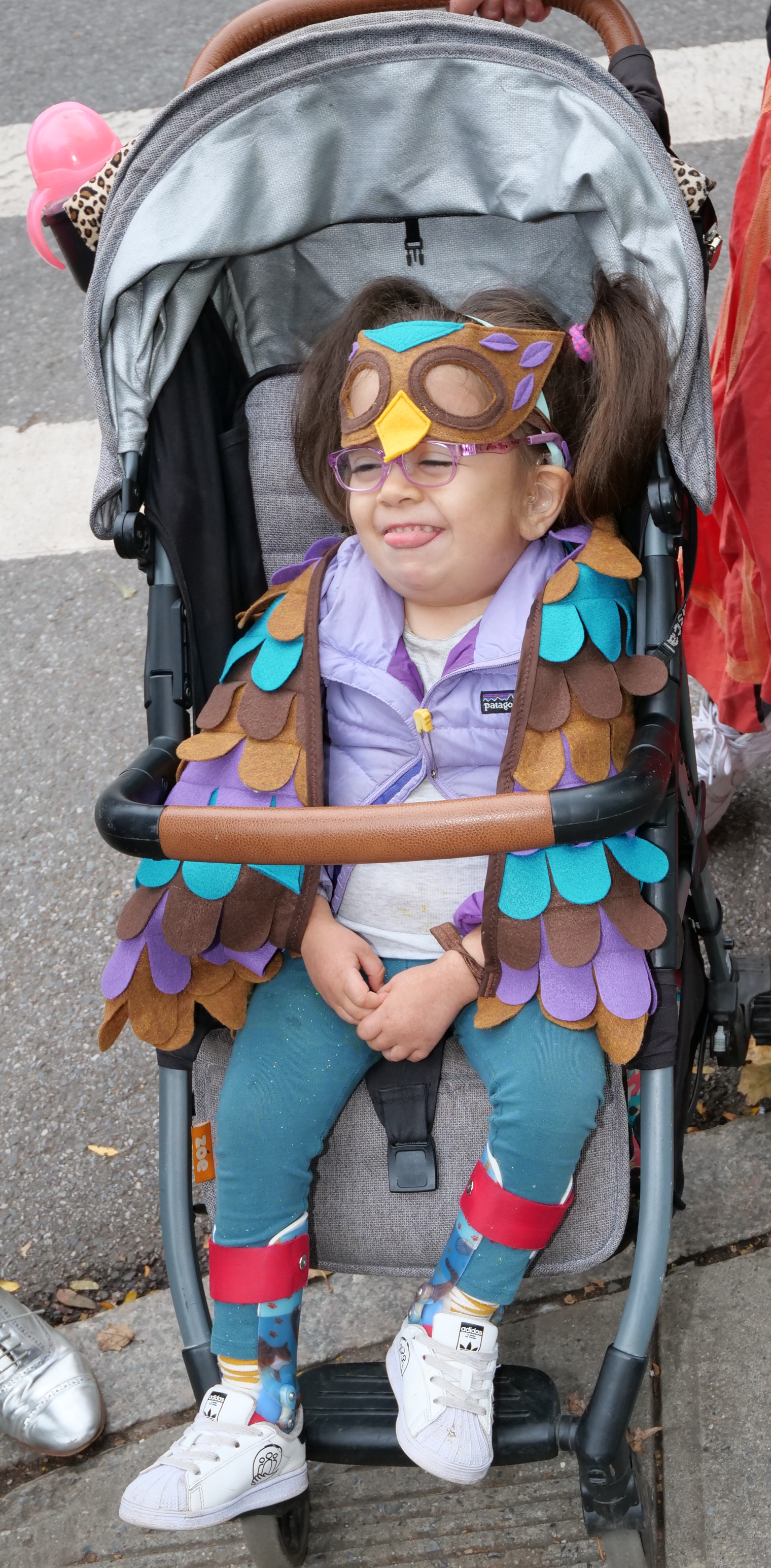 5:02 PM. An owl costume.