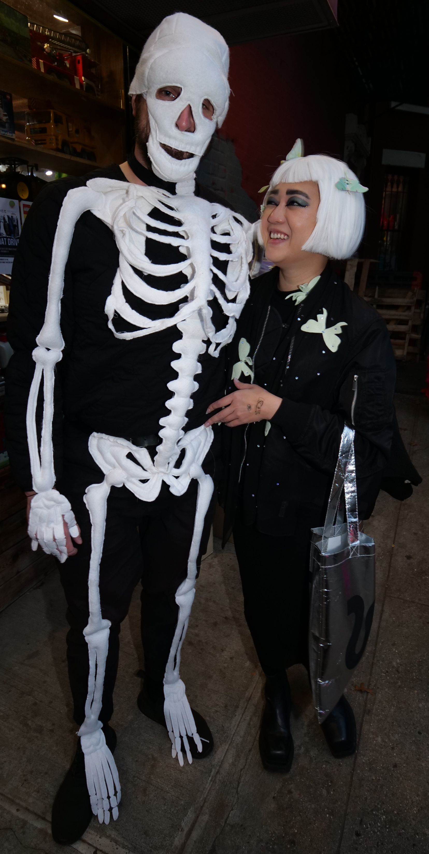 5:51 PM. A skeleton and a woman with blue devil horns. She's a Winter Demon Girl, an anime character.