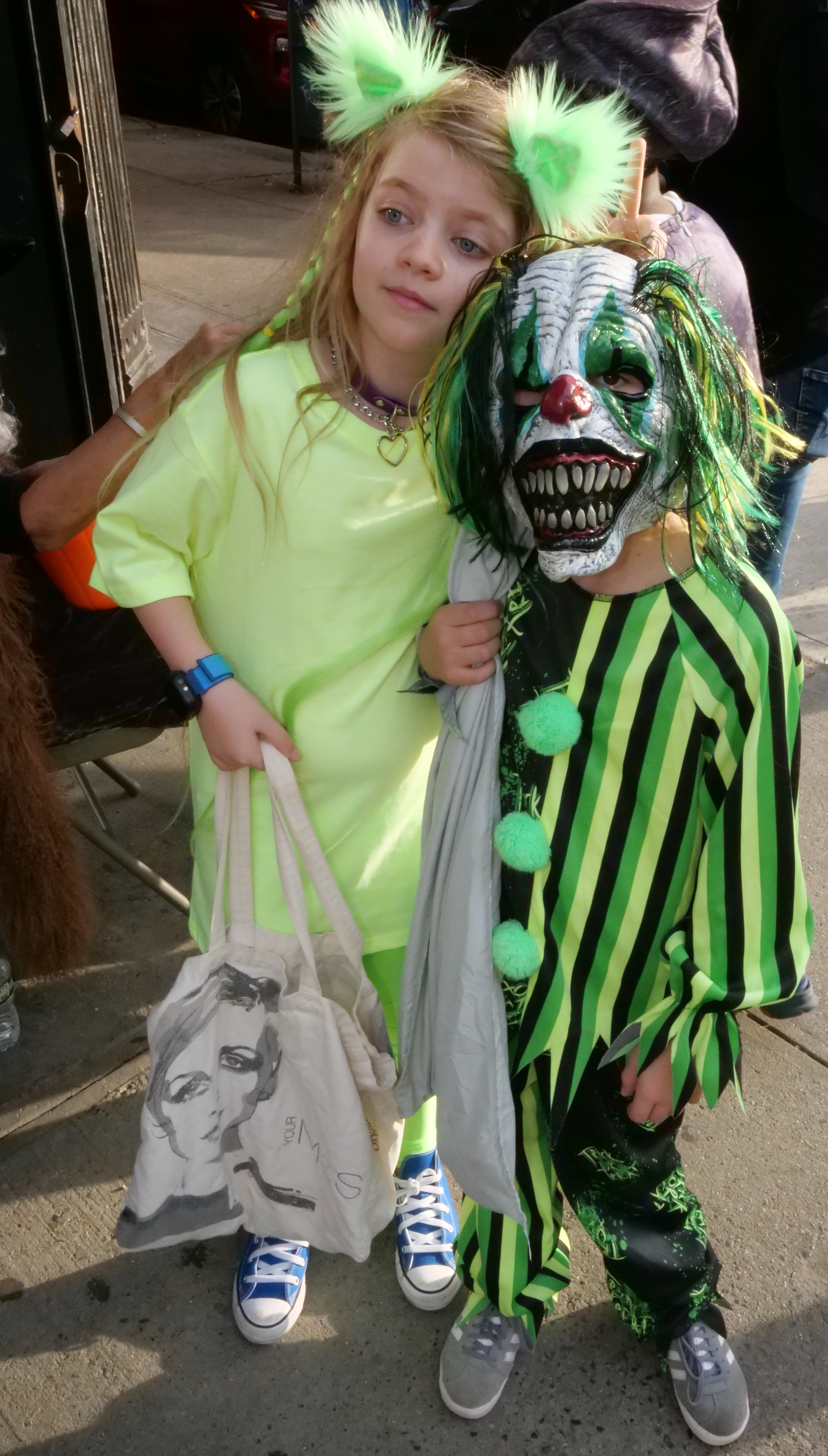 4:12 PM. A green cat and Neon Chaos Clown costume from Spirit.