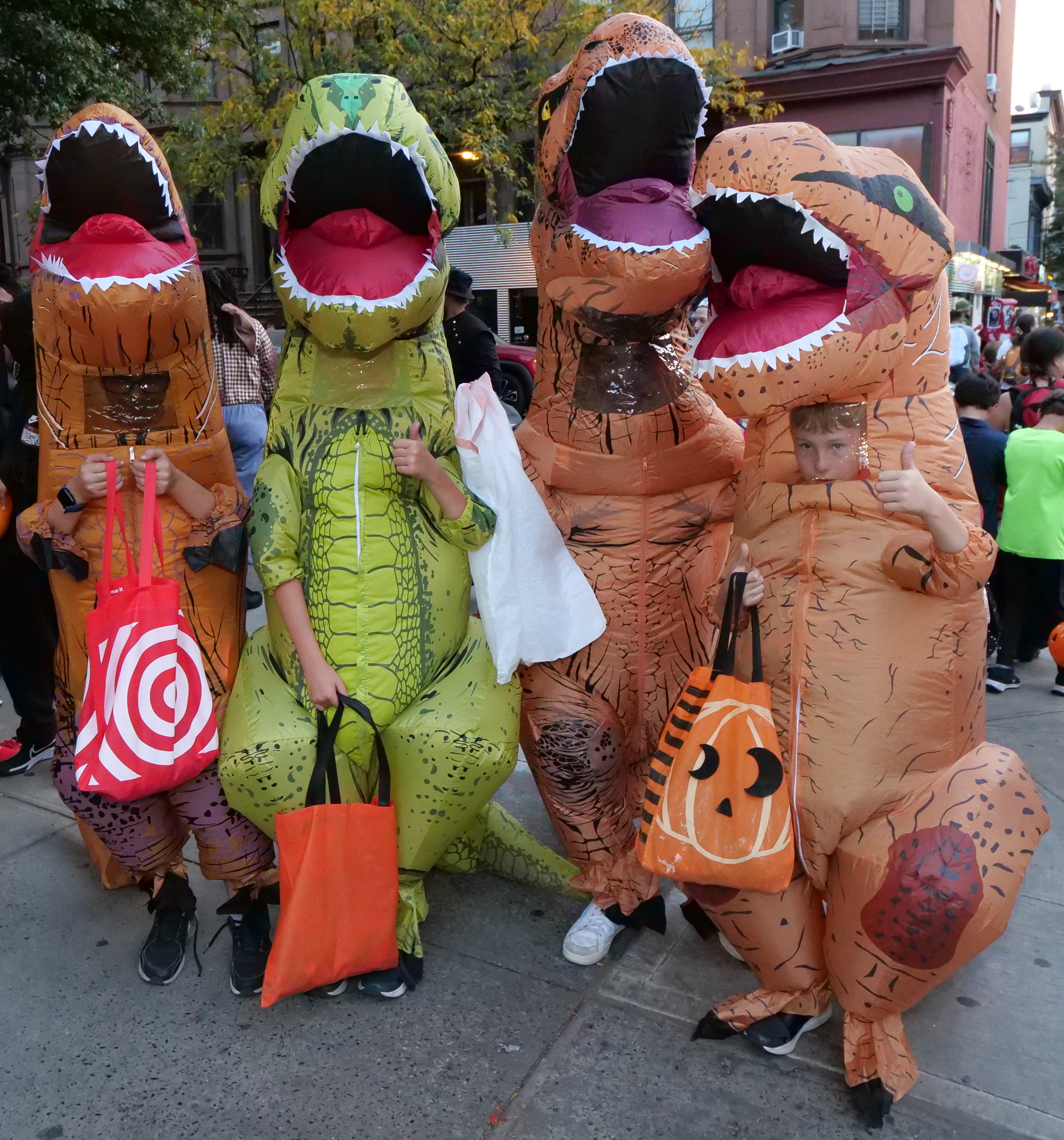 5:43 PM. Now four inflatable dinosaurs. The orange are T-Rex. The prior two were only nine minutes earlier. If only I could have had all six together...
