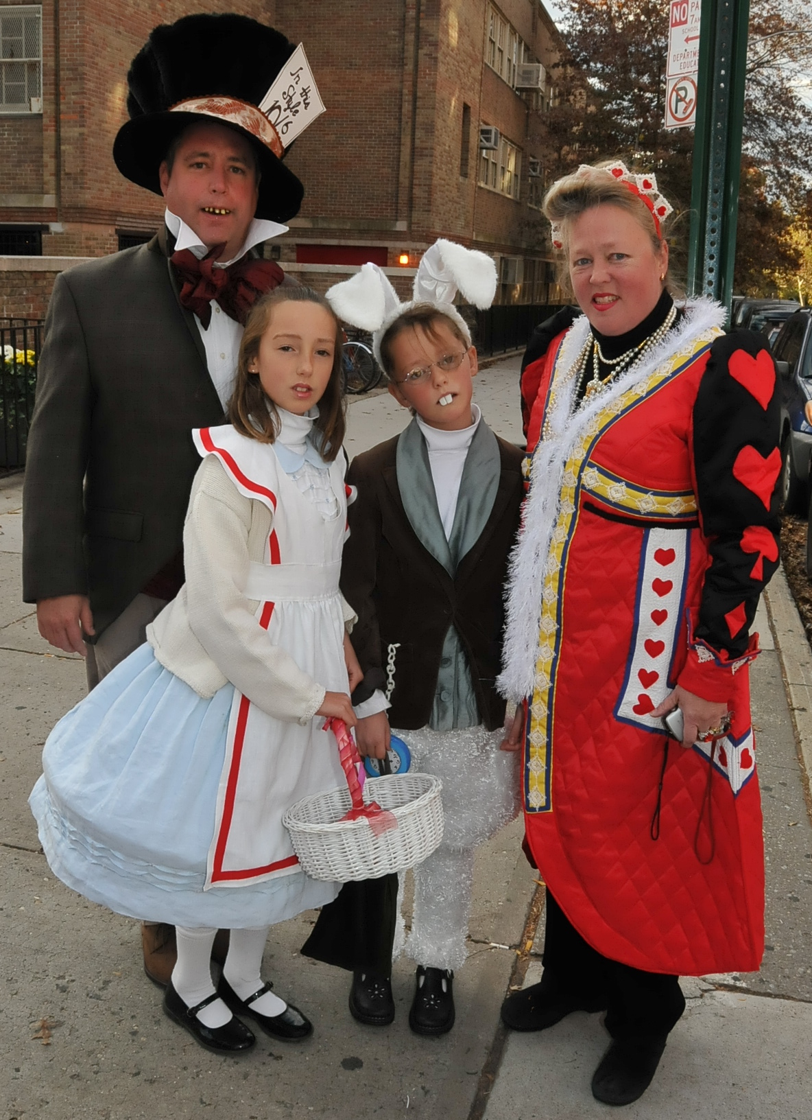 : Mad Hatter, Alice, White Rabbit and Queen of Hearts.