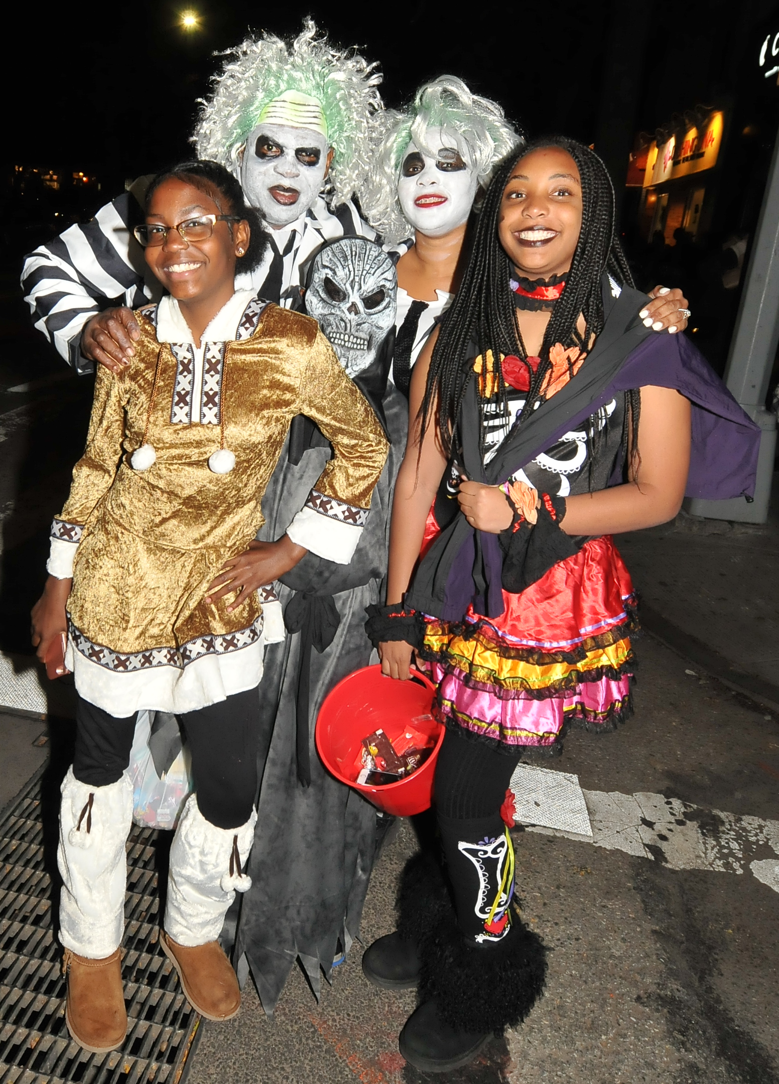 , a skull, and a Day of the Dead (Día de los Muertos) inspired outfit.