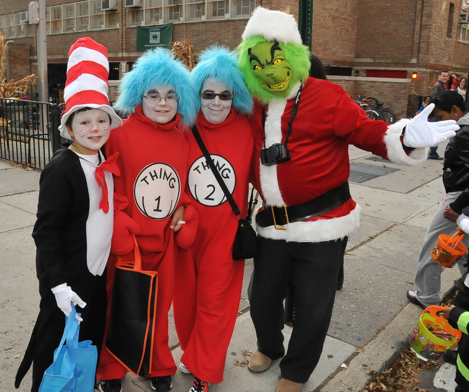 4:39 PM. Dr. Seuss characters: Cat in the Hat, Thing One and Thing Two, The Grinch.
