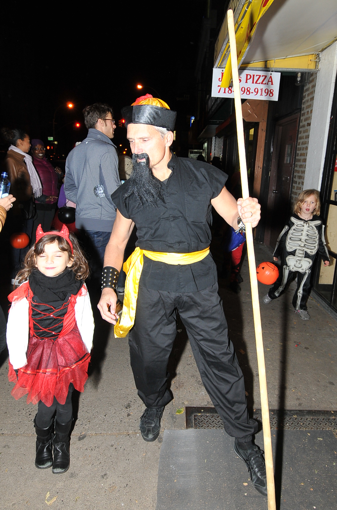 6:30 PM. A little devil, yellow belt in martial arts (possibly Japanese Bojutsu), and a little skeleton.