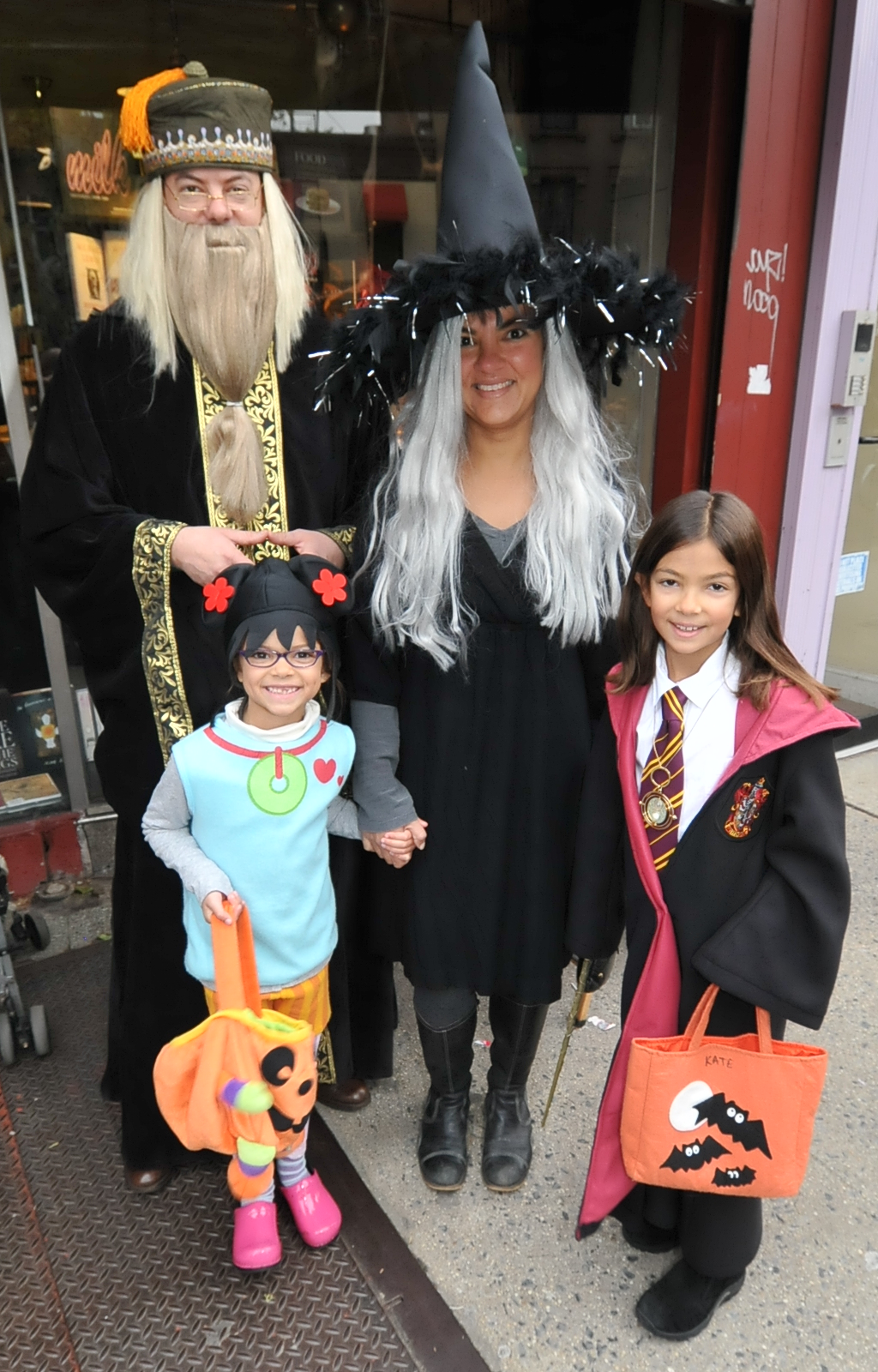 5:05 PM. Harry Potter characters: Parents are Albus Dumbledore and Helena Ravenclaw. She the resident ghost of Ravenclaw House at Hogwarts. The girl on the right is Hermione Granger. The other is wearing a Ni Hao Kai-Lan Romper And Headpiece. From Amazon.