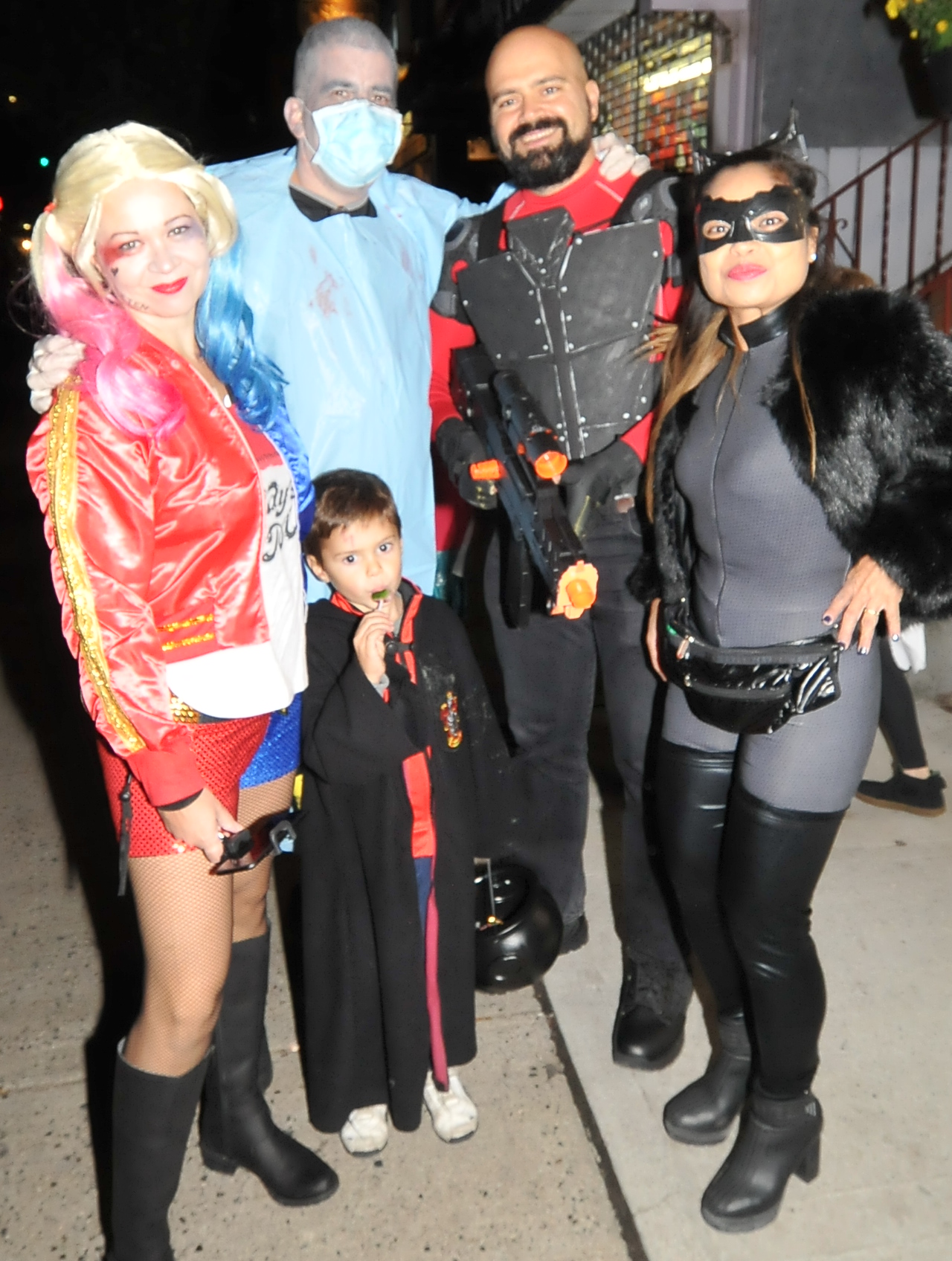 6:33 PM. Harley Quinn from Batman, a little Gryffindor from Harry Potter, a surgeon, DeadShot from the