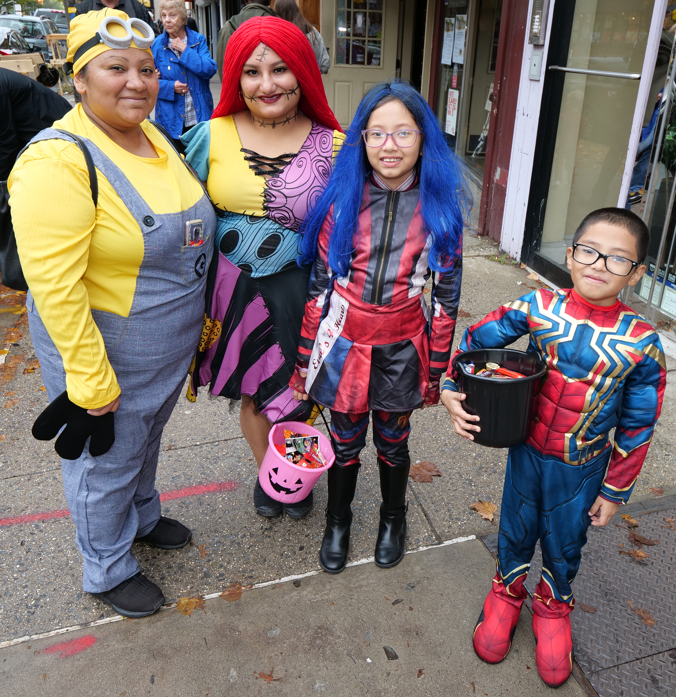 4:10 PM. A Minion from the Despicable Me franchise. A costume from The Day of the Dead. Evie's 4 Hearts, a fashion label founded by Evie from Disney's Descendants series. At far right is Ironman.