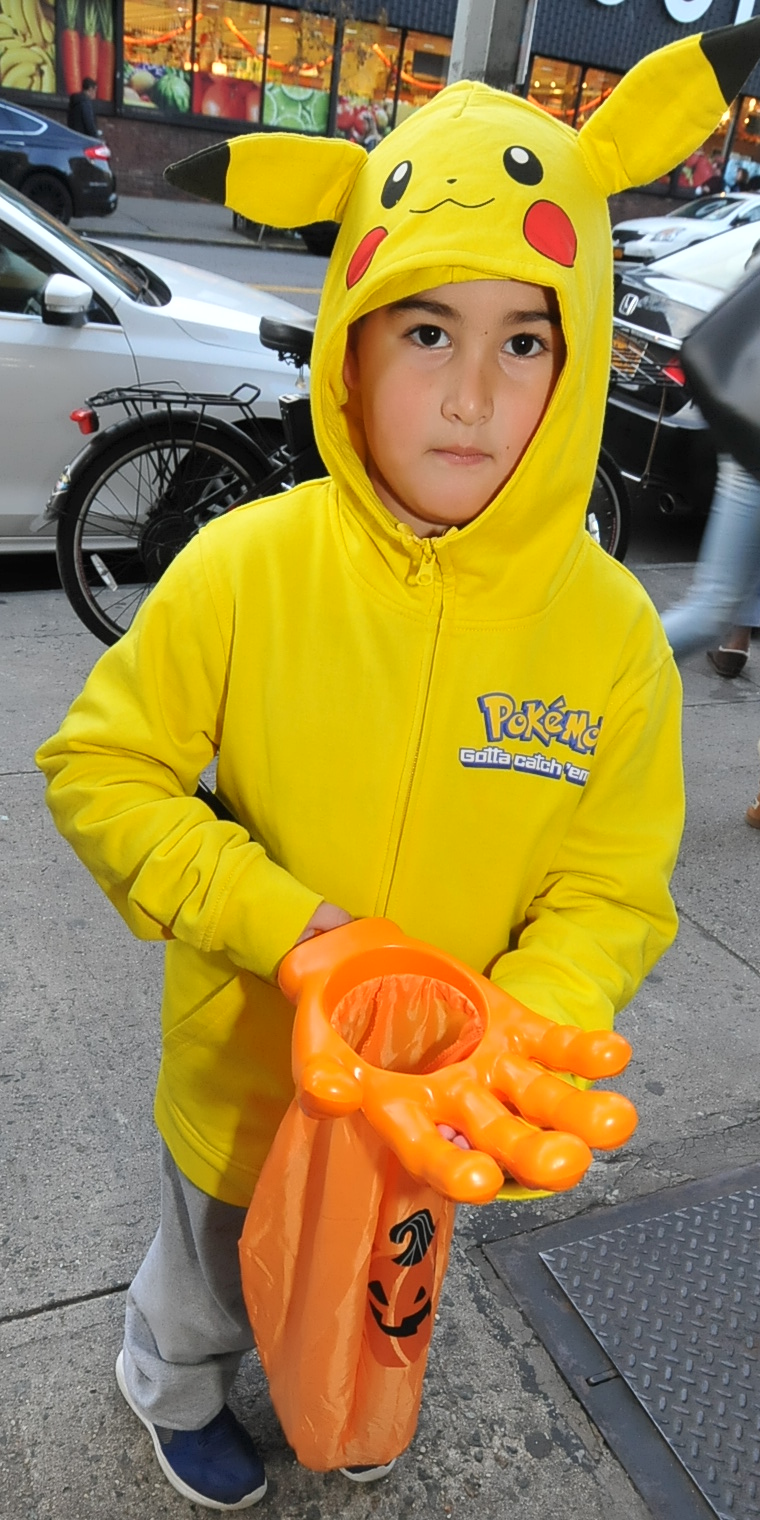 5:30 PM. A Pokémon Pikachu costume. The hand with the attached bag came from Target.