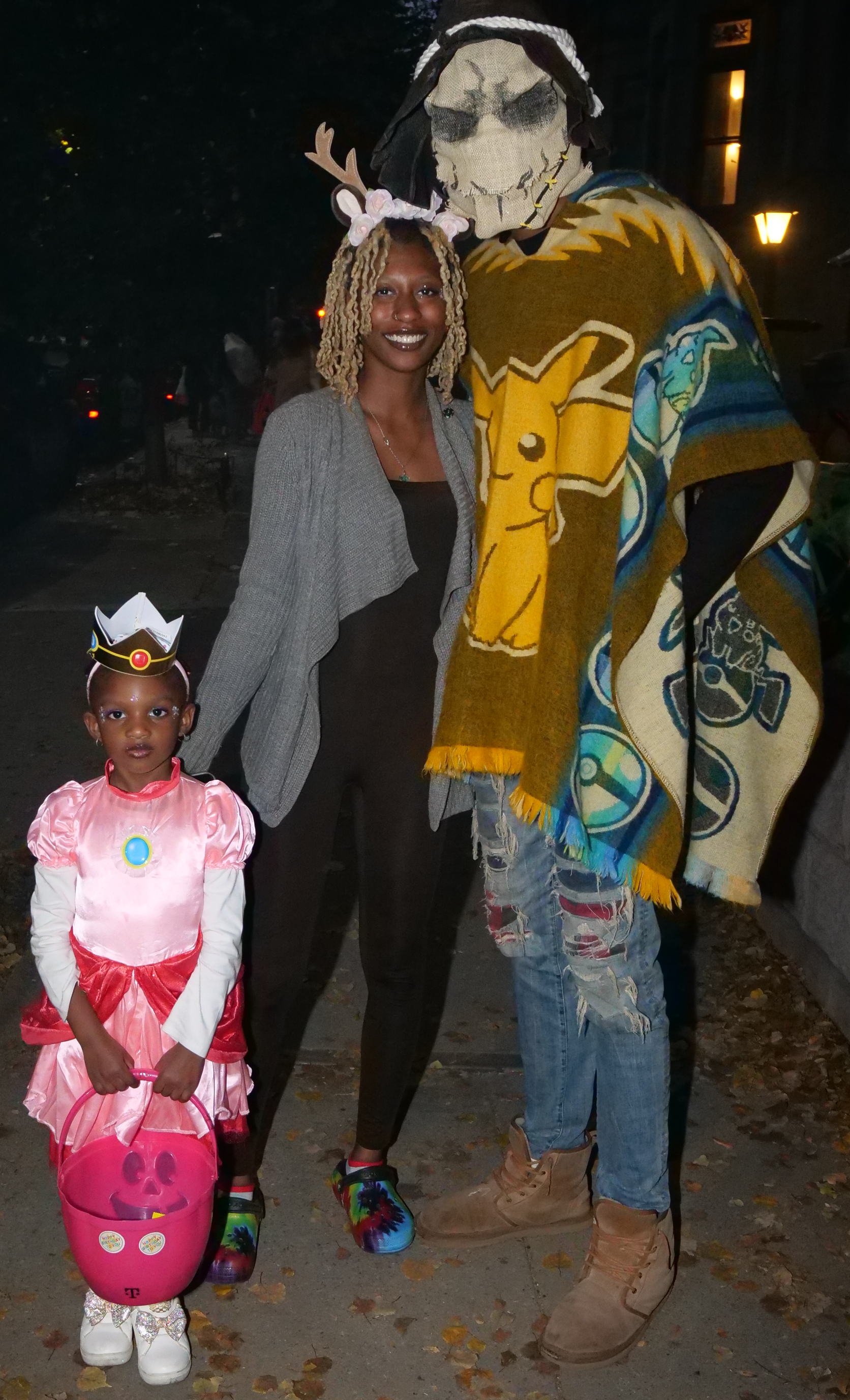 in Nintendo's Mario franchise. Then a raindeer. Lastly, a scarecrow wearing a Poncho (a Pokémon) Pikachu cape.