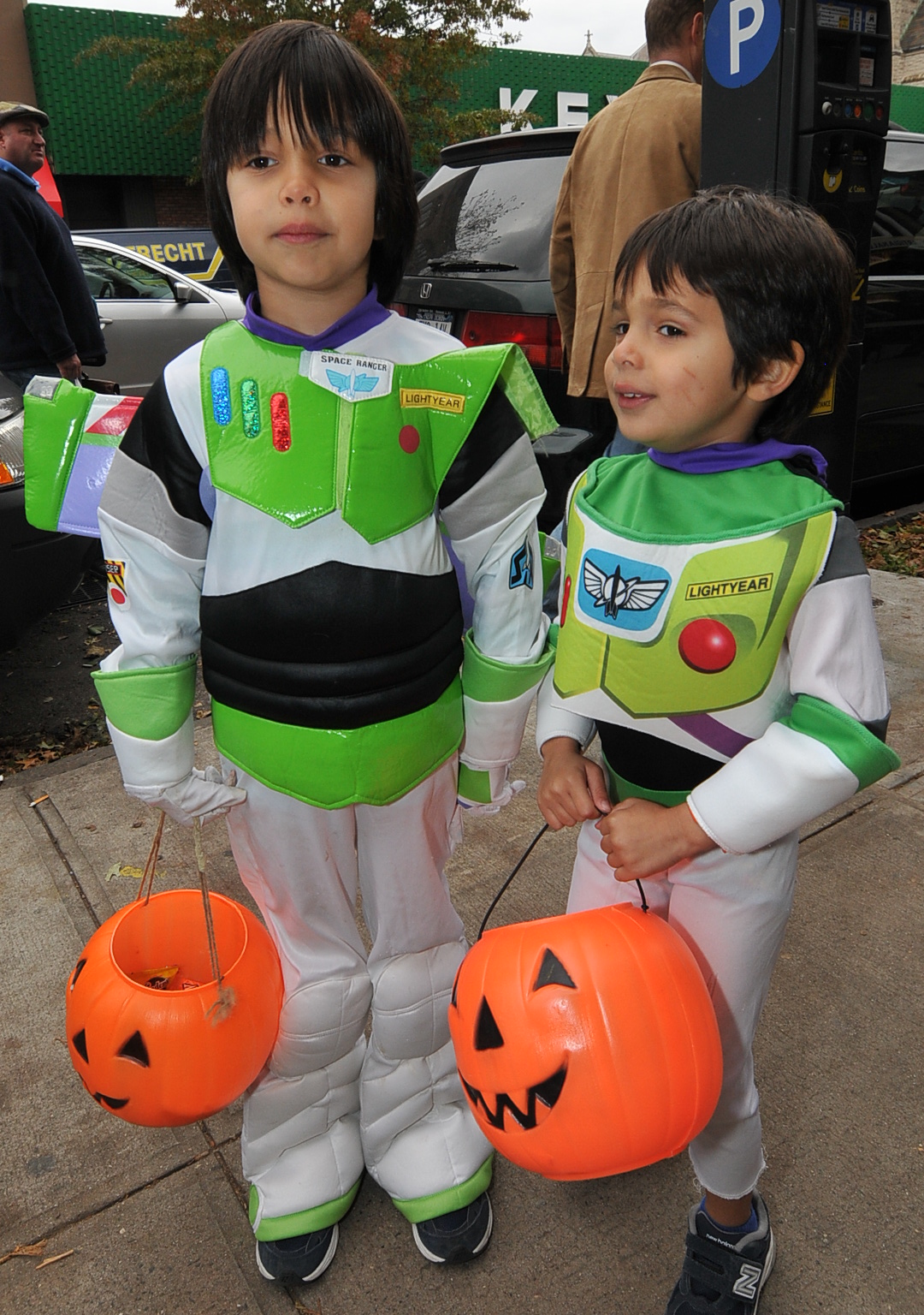 4:14 PM. Two in Buzz Lightyear costumes. One is labeled Space Ranger. The other is Buzz. From the movie