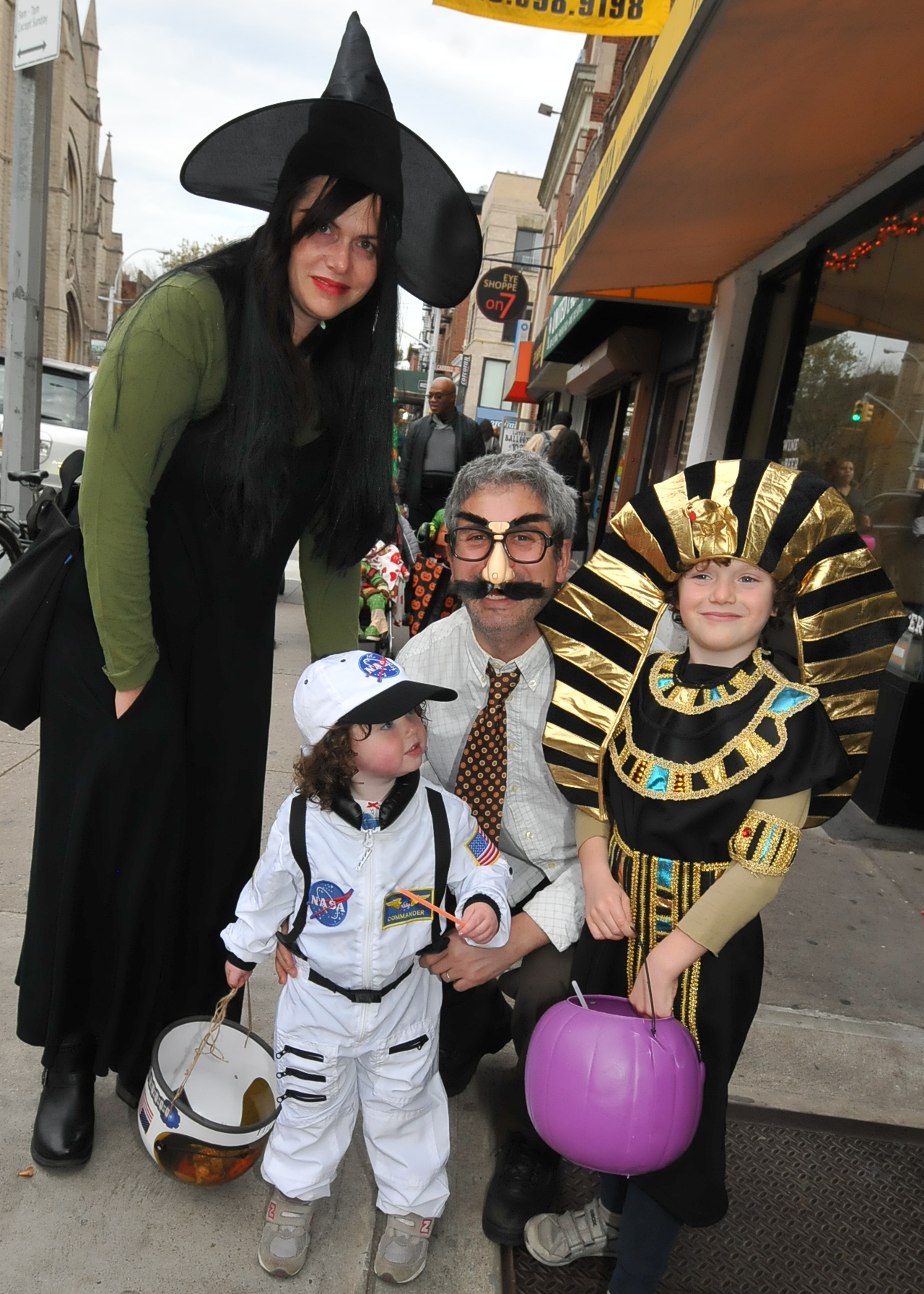 4:25 PM. A witch, a little astronaut, ?, and an Egyptian pharaoh.