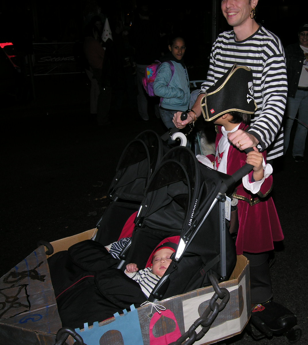 7:15 PM. A pirate ship construction with a bunch of pirates.