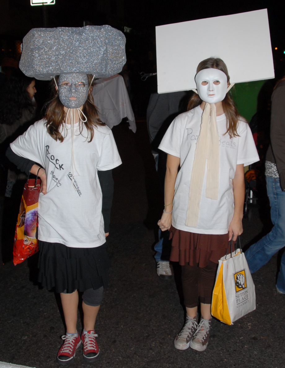 7:44 PM. Rock and a sheet of paper constructions. No scissors.