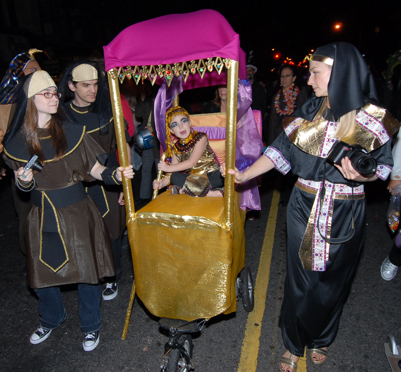 7:03 PM. An Egyptian chariot construction with a pharaoh and attendents.