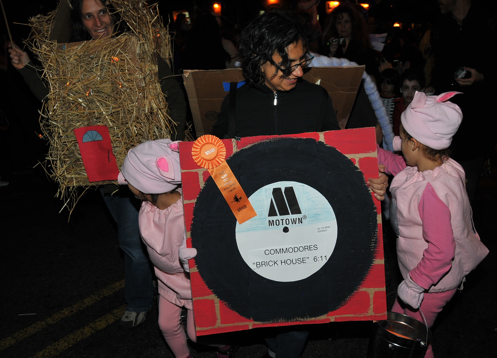 7:17 PM. A construction of a vinyl record on a brick wall. The record is The Commodores' "Brick House."