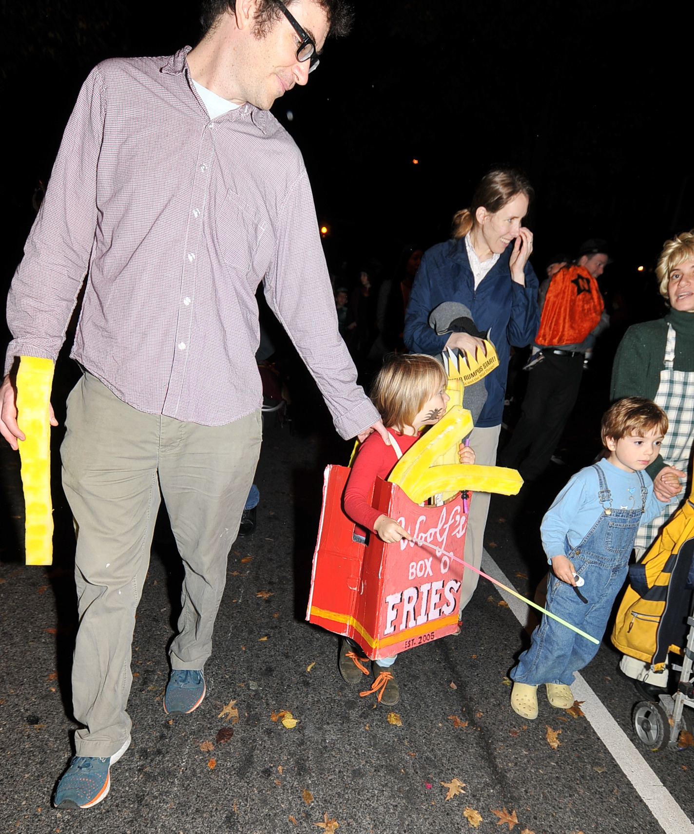 7:37 PM. Child in a Woolf's Box of Fries construction.