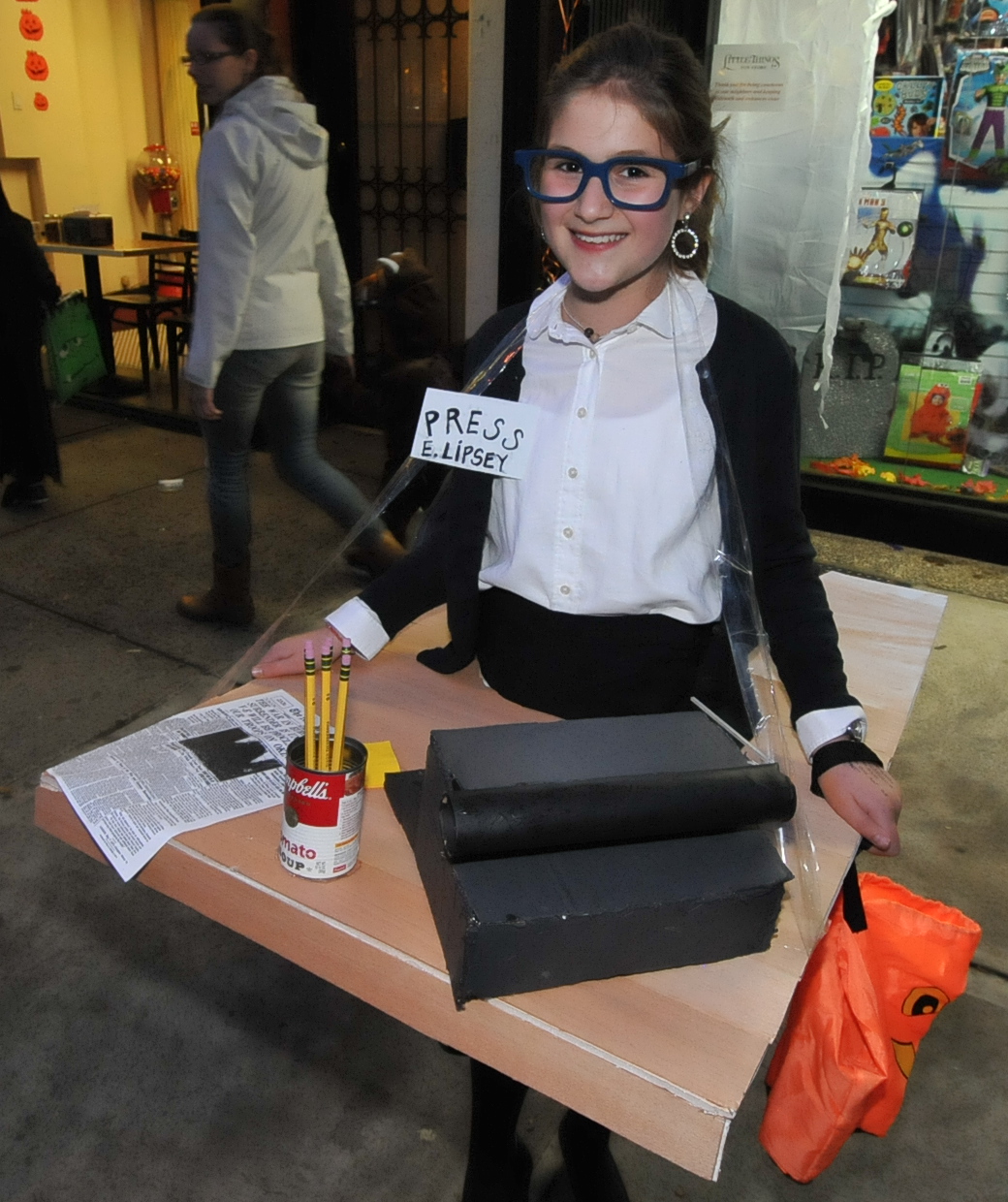 5:52 PM. A press desk construction. Name tag has "Press, E. Lipsey"