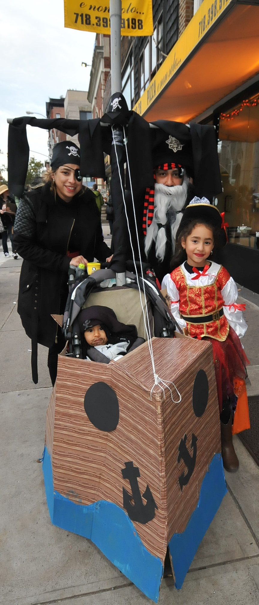 5:14 PM. A pirate ship construction, with a family of pirates.