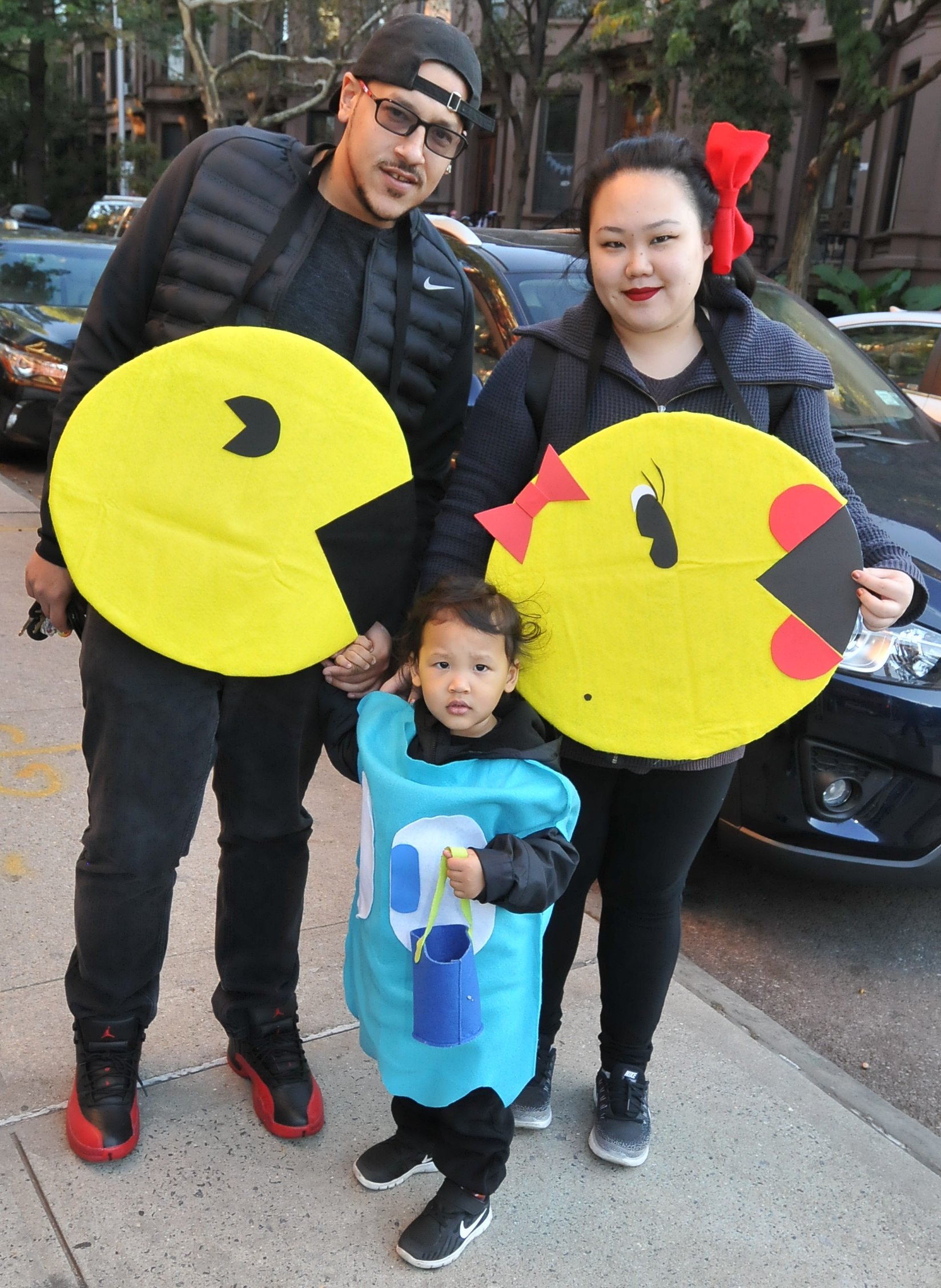 4:57 PM. Mr. and Mrs. Pac-Man constructions, with a can of ?.