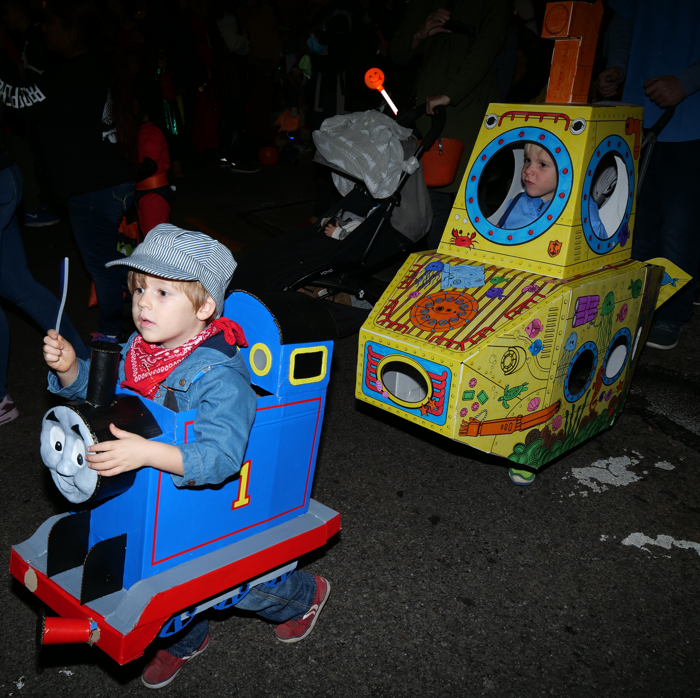 train construction and a yellow submarine.