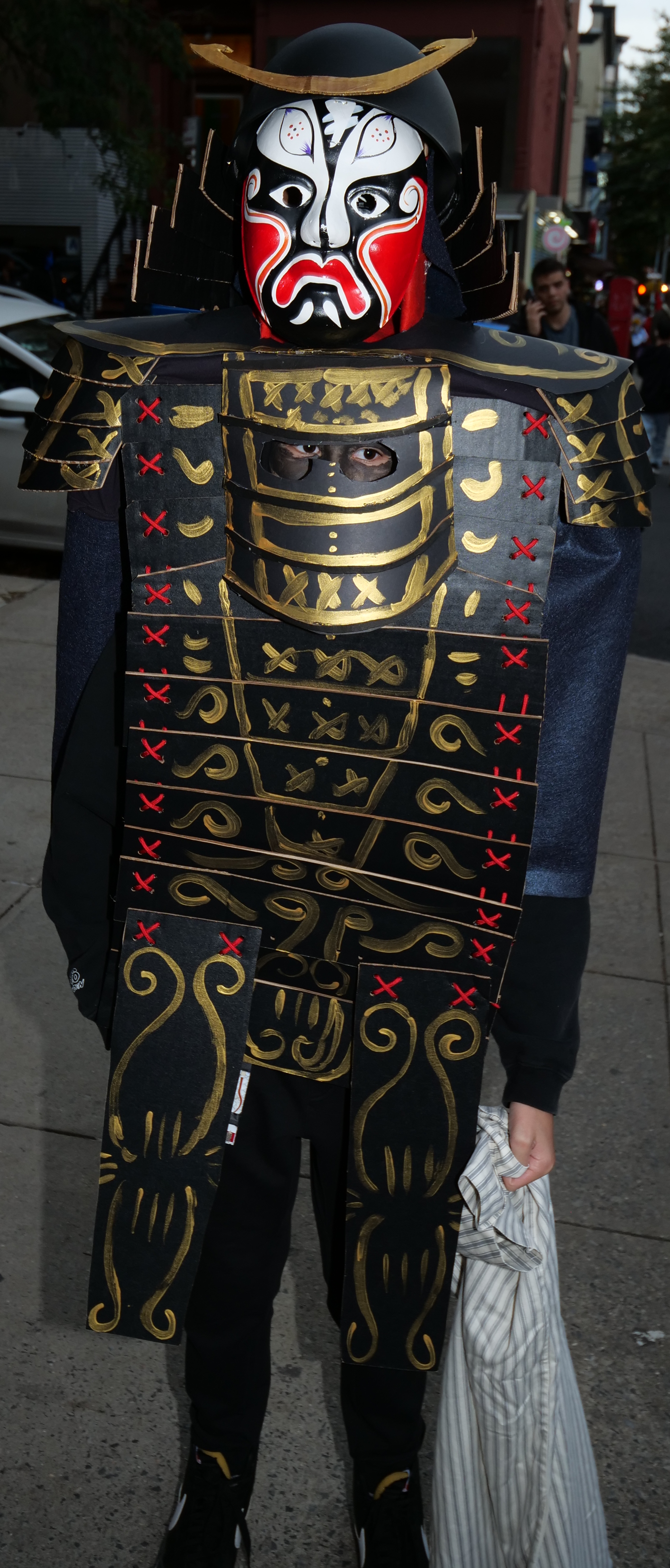 5:08 PM. Samurai armor construction with a Kumadori mask used in Kabuki theater. Also a halo.