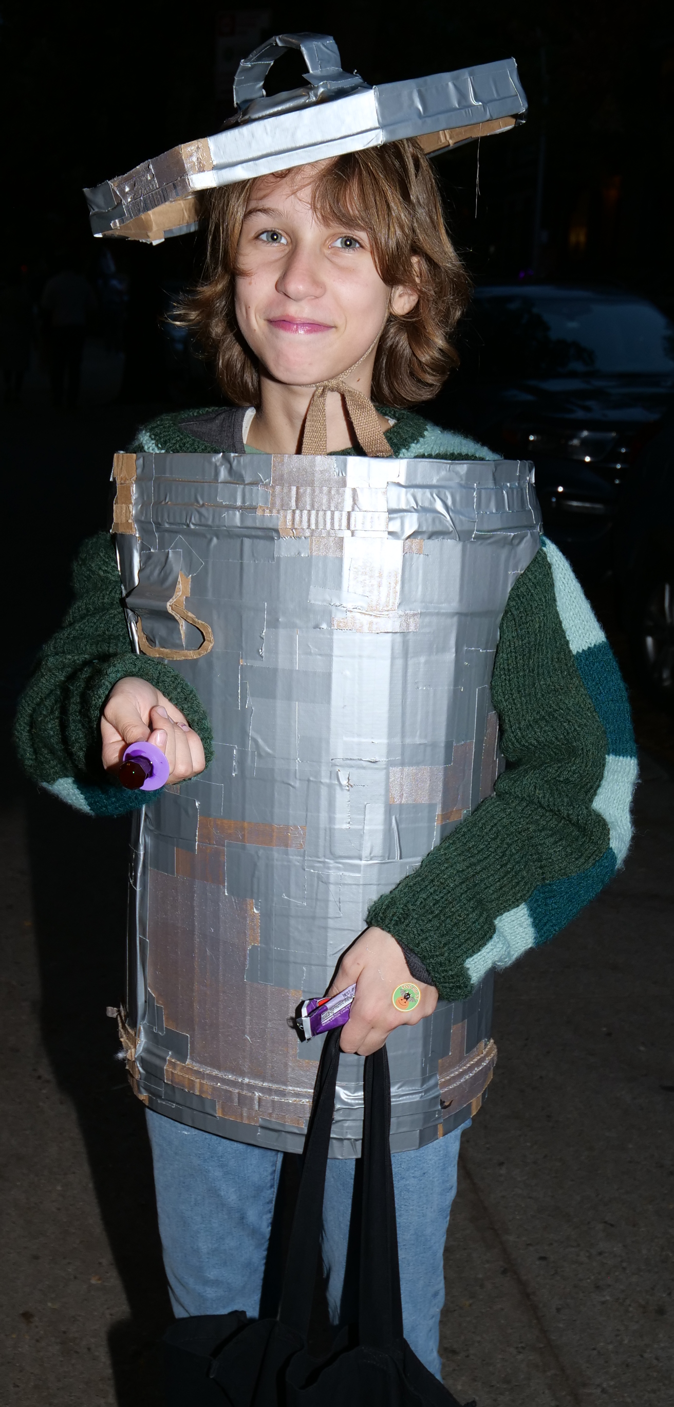 5:52 PM. A garbage can construction. Likely Oscar the Grouch from