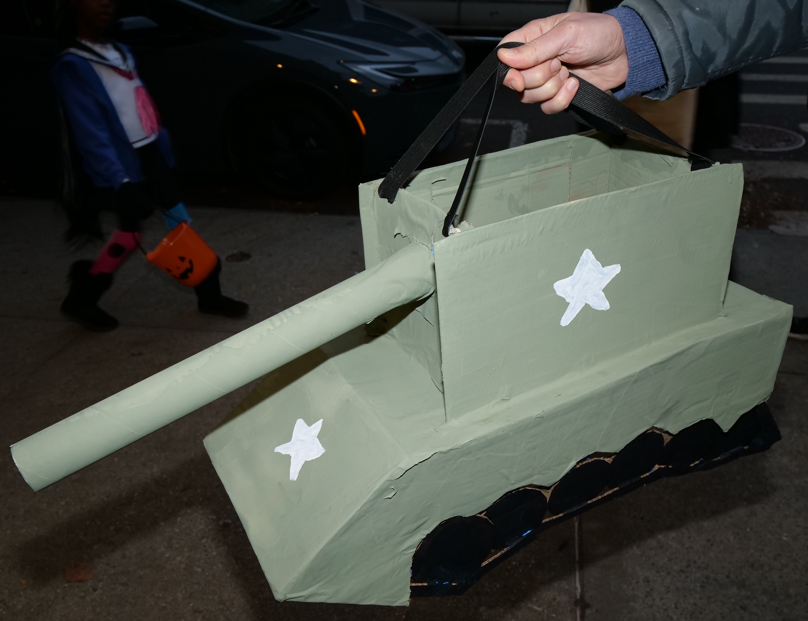 5:54 PM. An army tank construction. His son didn't like wearing it.