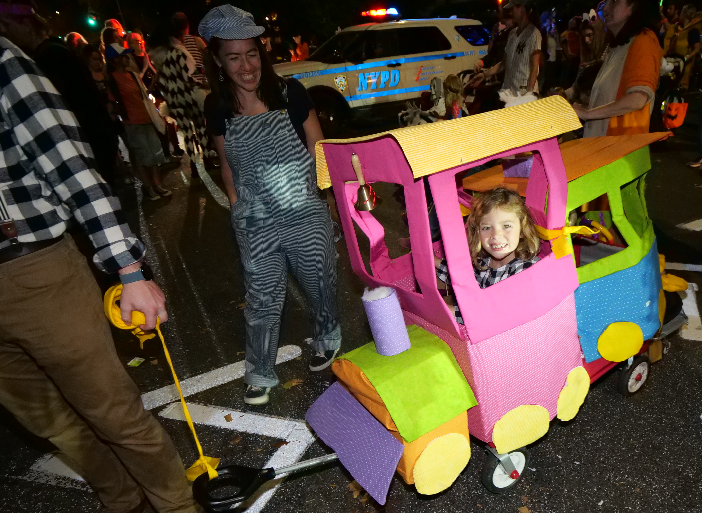7:02 PM. A colorful train construction. With a bell instead of a whistle. This one is fabric over cardboard. Different.
