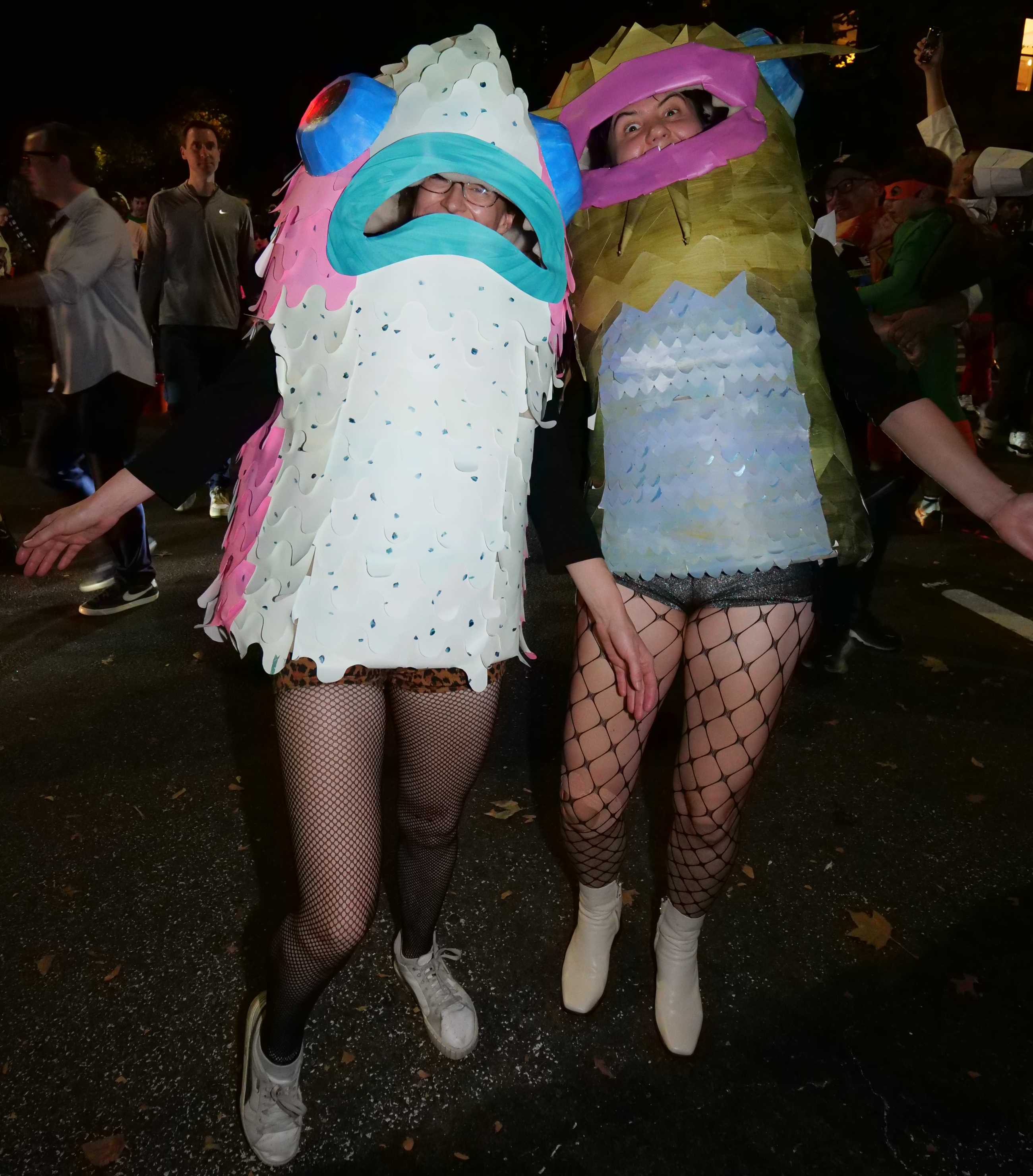 7:04 PM. Two homemade sea creatures constructions. Could be from Baby Sharks.