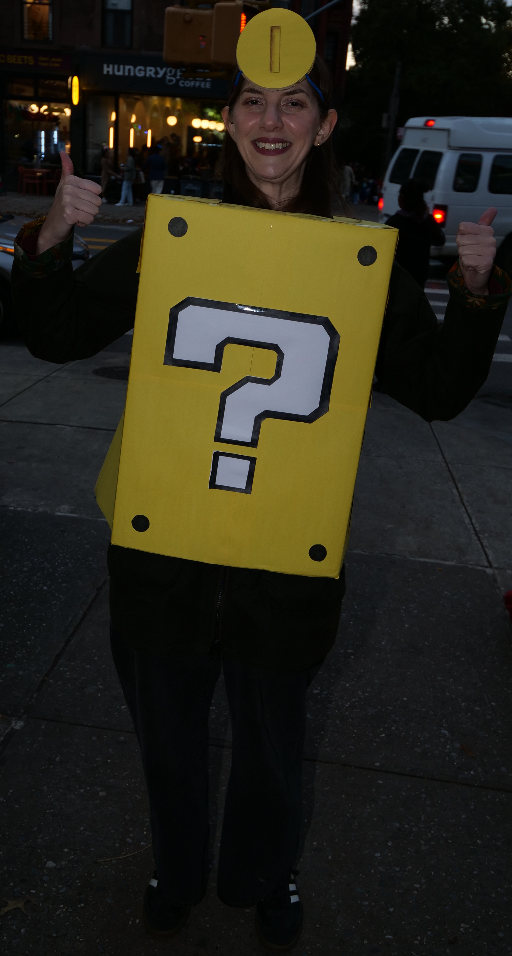 5:48 PM. A floating Question Block construction from Mario. You punch or headbutt the thing and a coin, or something, comes out.