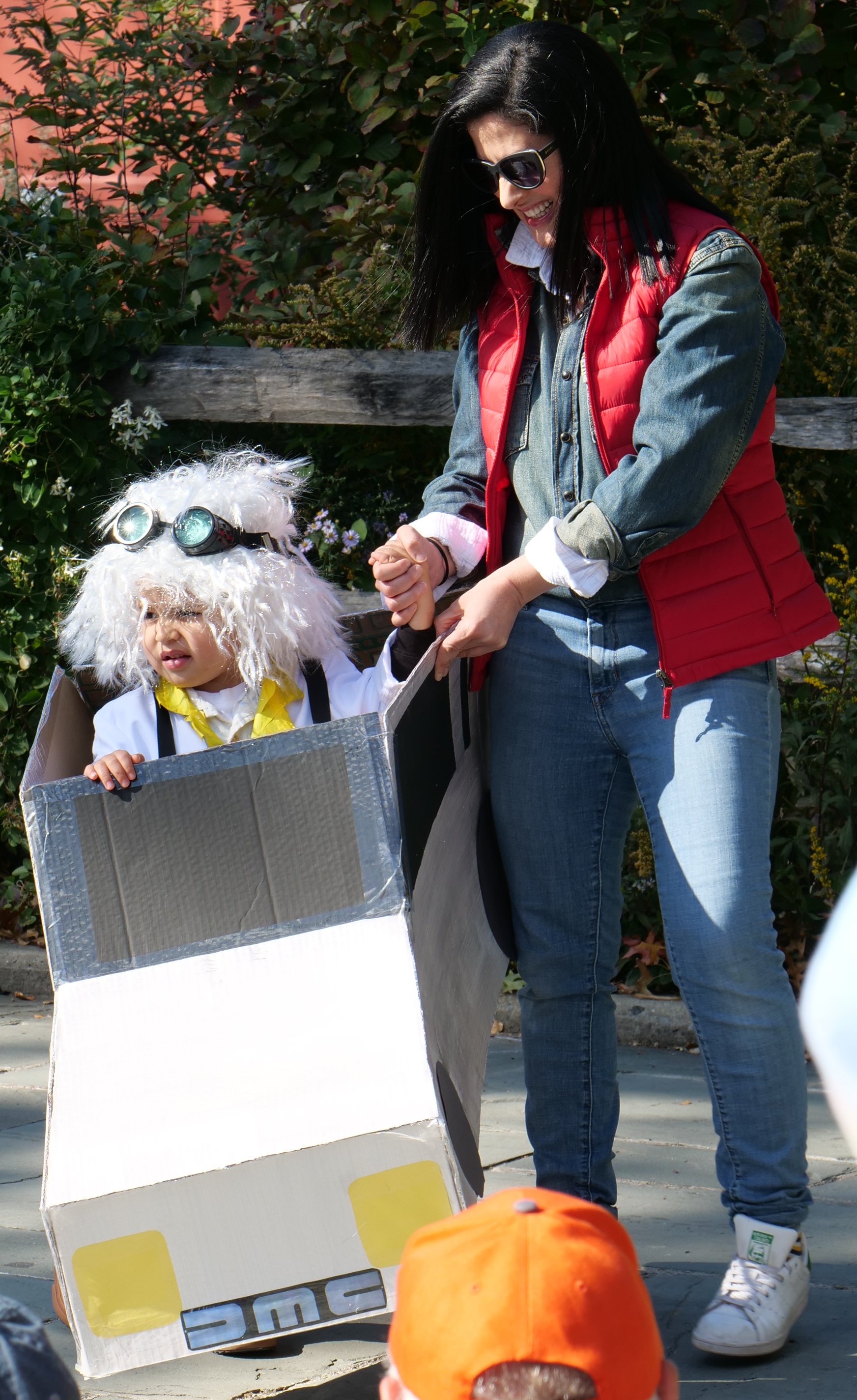 12:10 PM. Dr. Emmett "Doc" Brown in the DeLorean construction, with Marty McFly, from