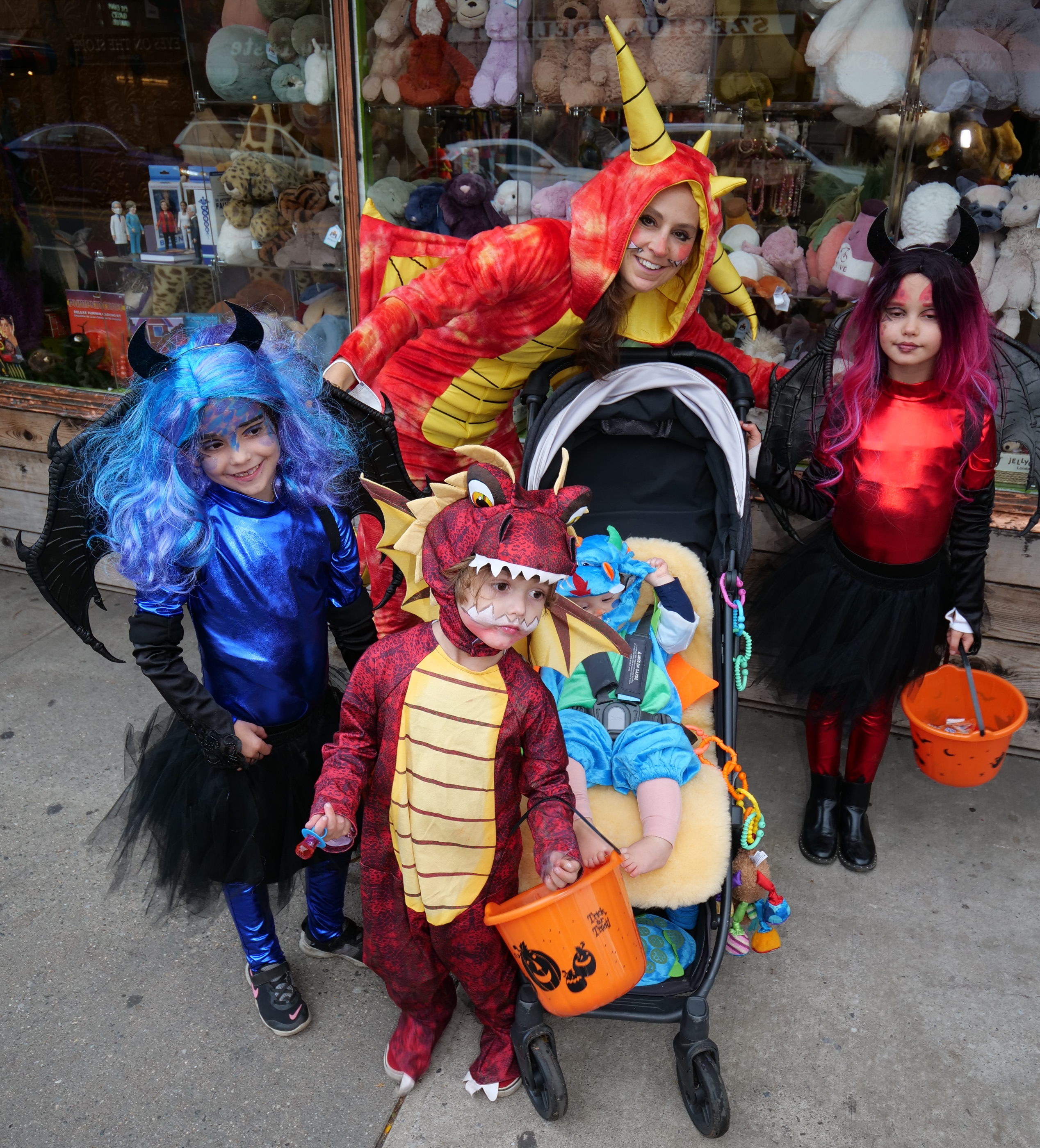 4:51 PM. A green devil witch?. Mom, and in front, are red dragons. At right, another devil.