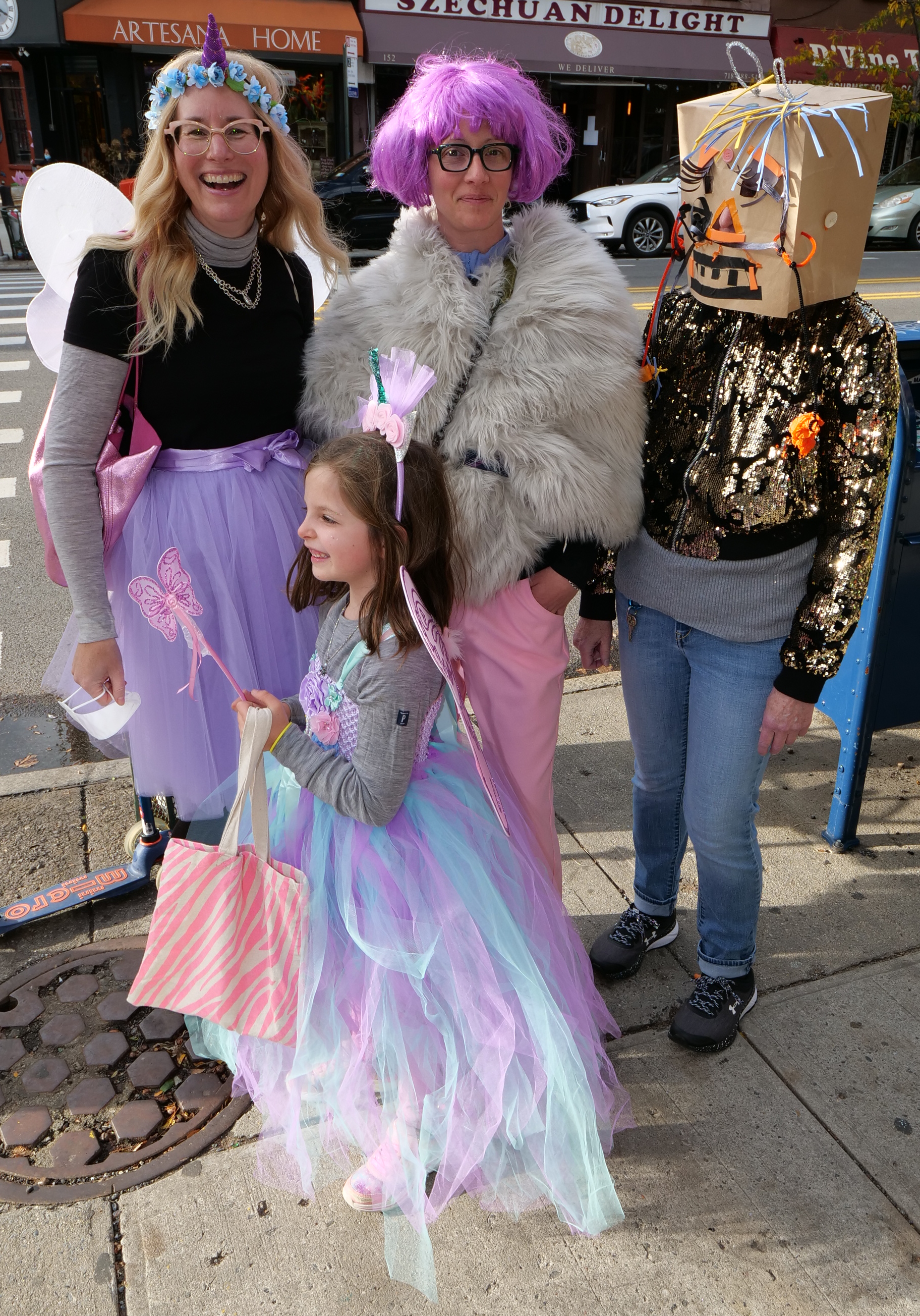 3:49 PM. A unicorn angel, Melisandre from Game of Thrones, Shuffle Bot from the LMFAO music video "Party Rock Anthem", and a little fairy princess.
