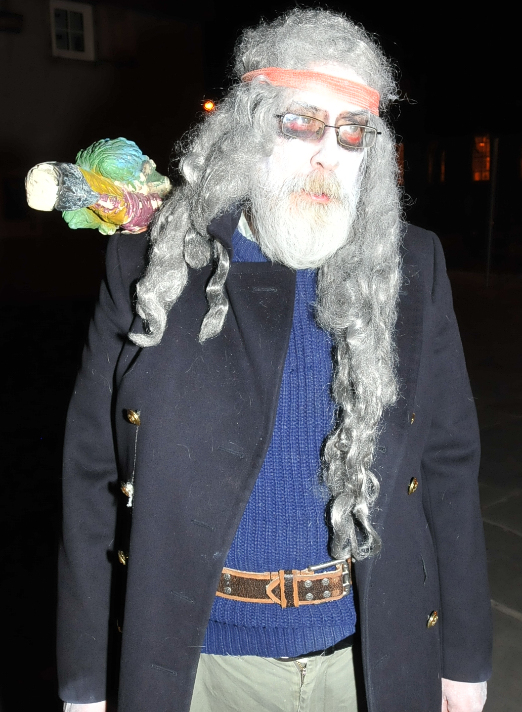 7:50 PM. A ghost. That's a parrot on his shoulder that should be upright.