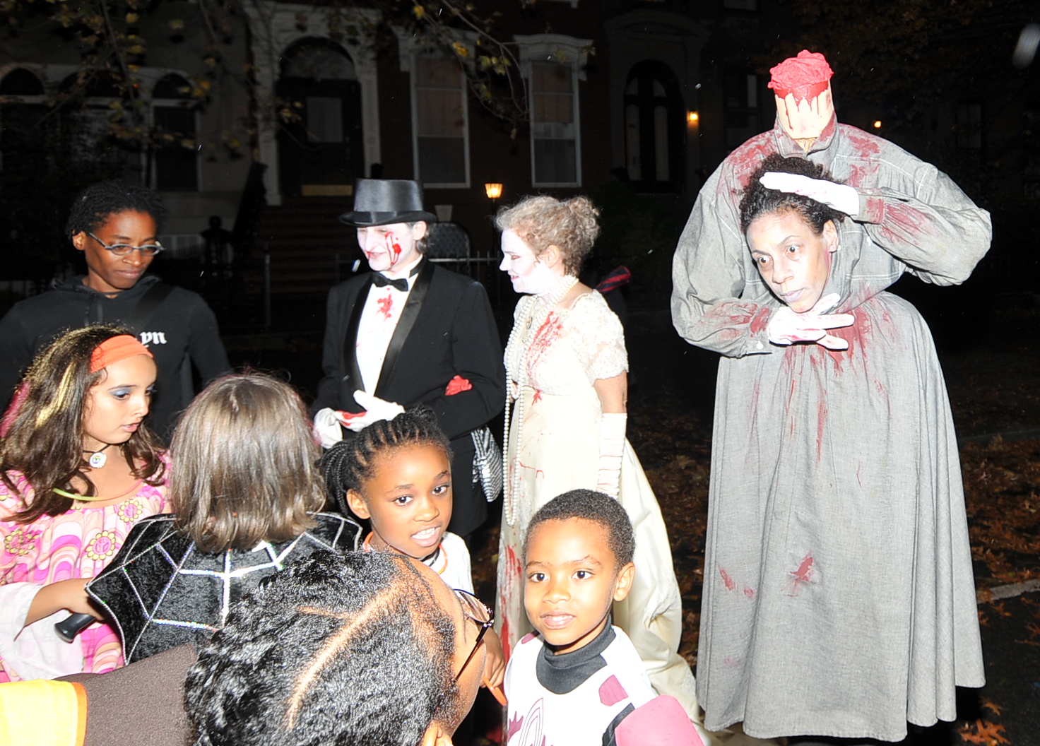 7:54 PM. The couple in the back is the one that Google won't process due to content restrictions. At right is a headless woman carrying her own head.