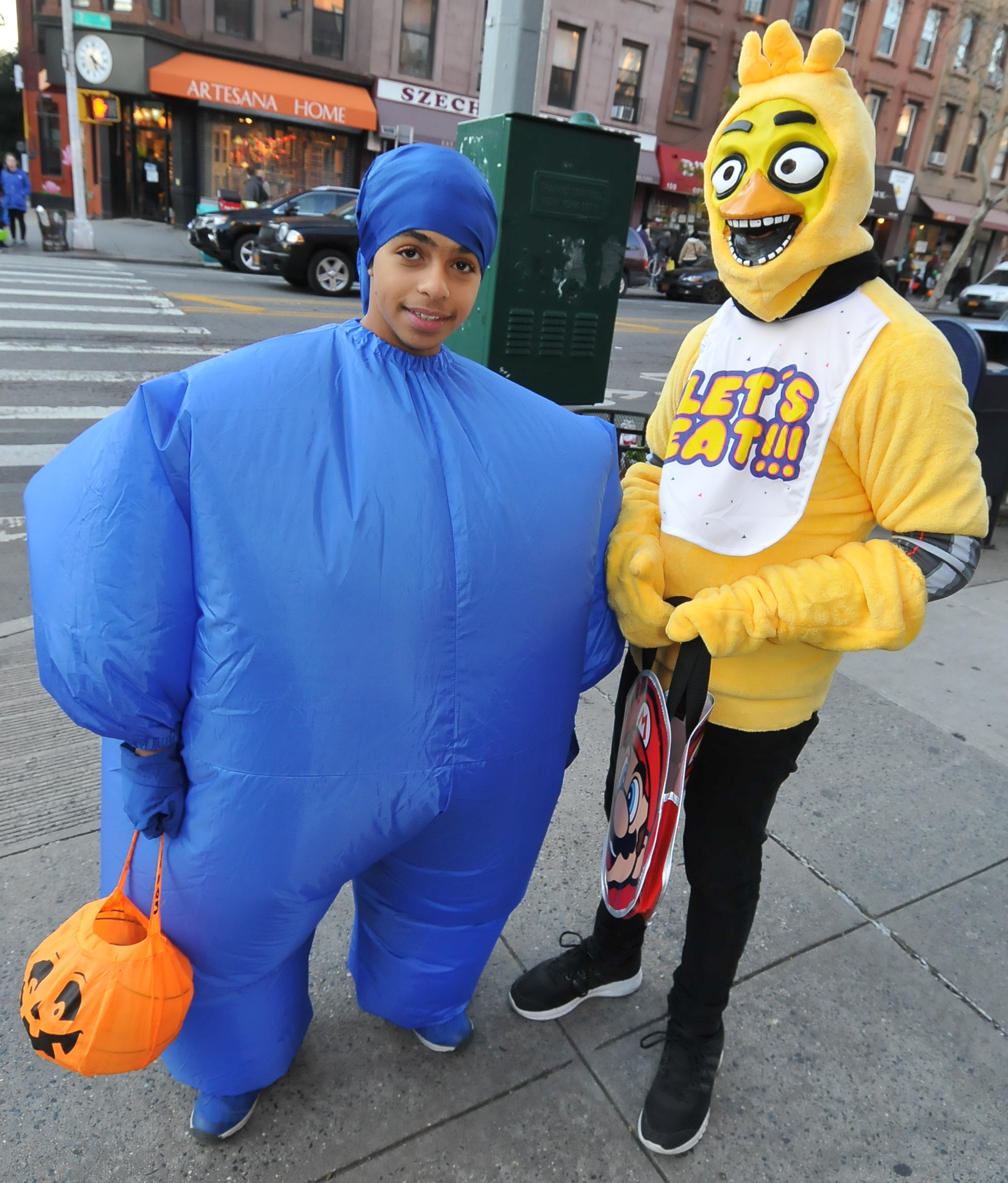 5:22 PM. An inflatable blueberry, and Chica the Chicken from the video game series