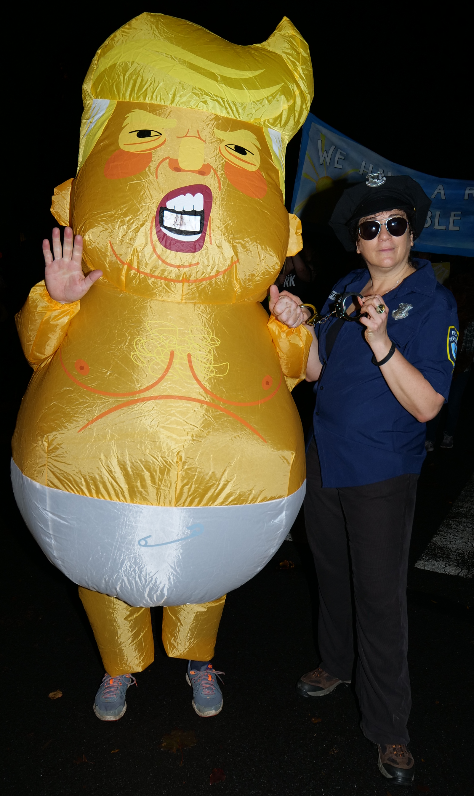 7:02 PM. An inflatable Trump. Trump is under arrest here.