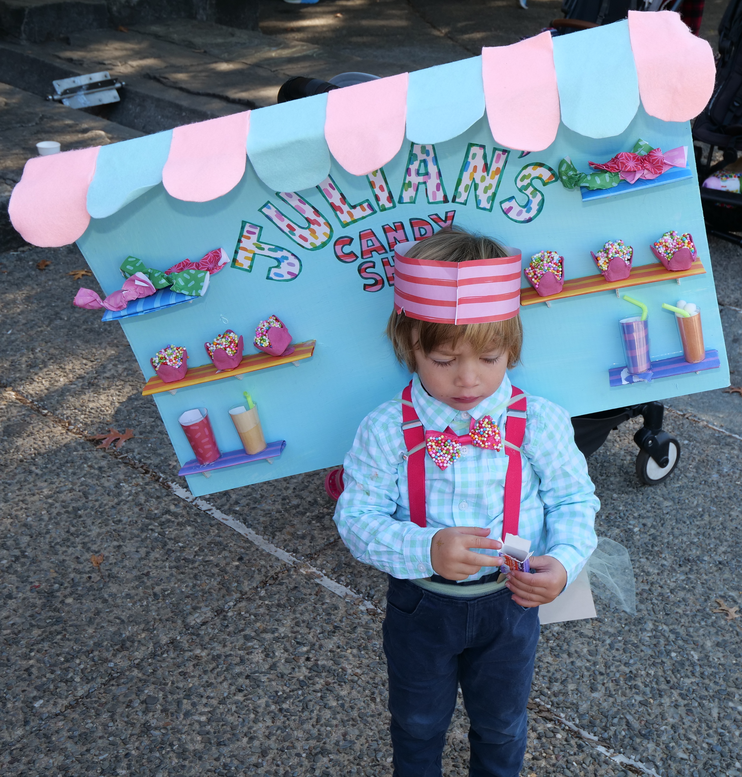 12:28 PM. Julian's Candy Shop construction. He was also at the Halloween night parade. That time he was