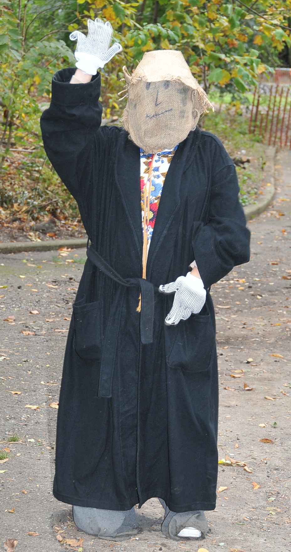 1:36 PM. A scarecrow.